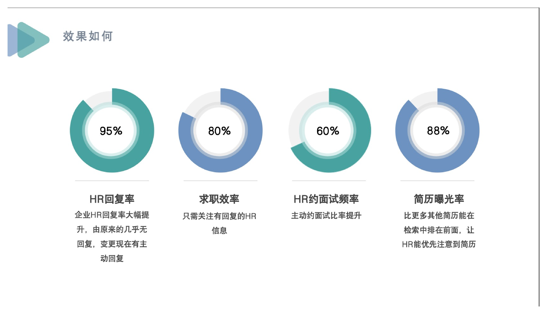 你站在一个求职者角度,特别是一个刚失业着急找到工作的角度看,这些功能确实有吸引力,实际我们运营数据也说明了这一点,基本上80%的用户都是好评。