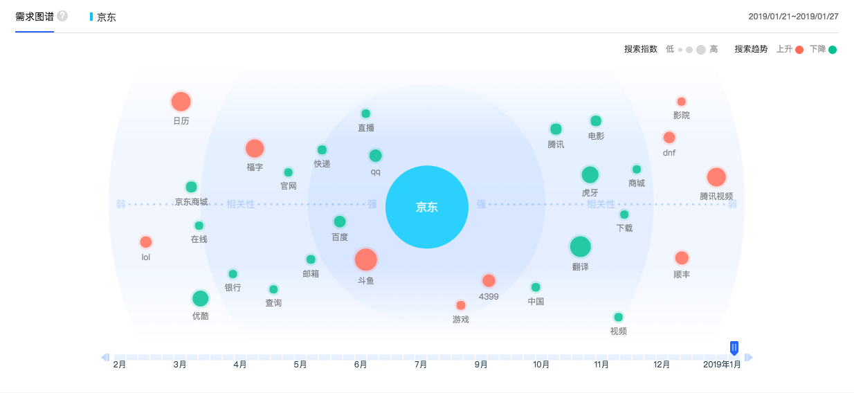 比如随意输入一个产品名称,在“需求图谱”一栏里,就可以看到相关的搜索热词,凭此我们可以判断该产品用户还对什么感兴趣。这对挖掘用户喜好以及潜在的商务合作机会都有很大帮助。