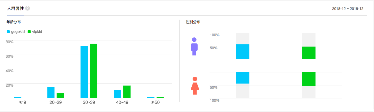 在“人群画像”一栏里,就可以看到两者在地域、年龄、性别上的差异。通过对比,你可能会发现A产品比B产品人群更加年轻化,男性比例也更多一些。