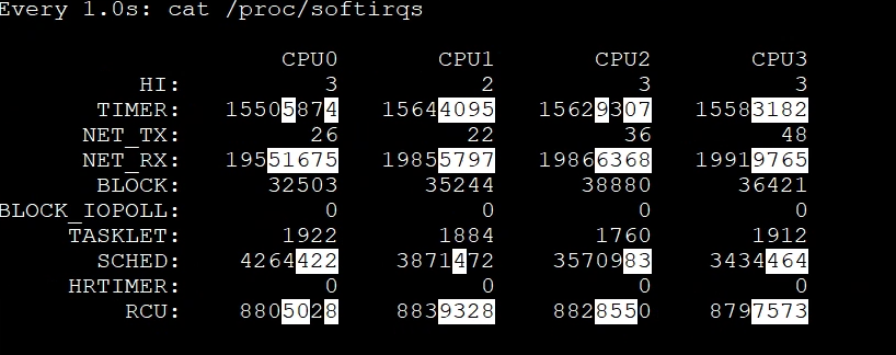 我们看到上图中全是绿色的,也就是说Gateway中的线程一直处于Runnable状态,看来工作线程确实挺忙的了。而在前面的worker-8性能数据中,si cpu已经达到了16%左右。所以结合这一点,我们来看一下实时的软中断数据: