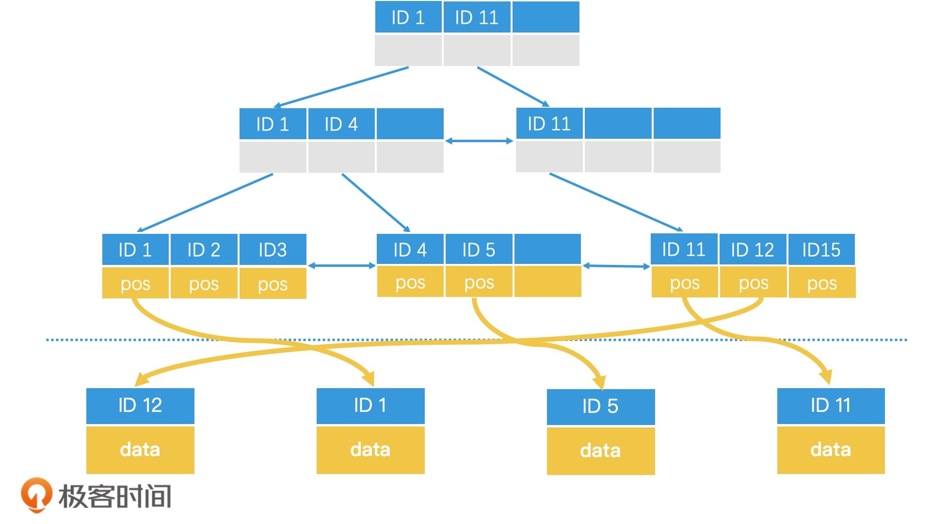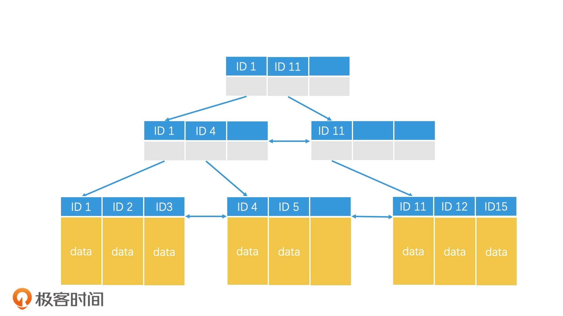 对于不要求强一致性的应用场景,比如说在某些应用中更新用户头像时,我们可以接受这种临时性错误,只要能保证系统的最终一致性即可。但如果在要求强一致性的应用场景中,比如说在金融系统中进行和金钱有关的操作时,我们就需要做好一致性管理,我们可以对索引和数据进行统一加锁处理,或者直接将索引和数据合并。这么说比较抽象,我们以MySQL中的B+树为例,来看看它是怎么管理一致性的。