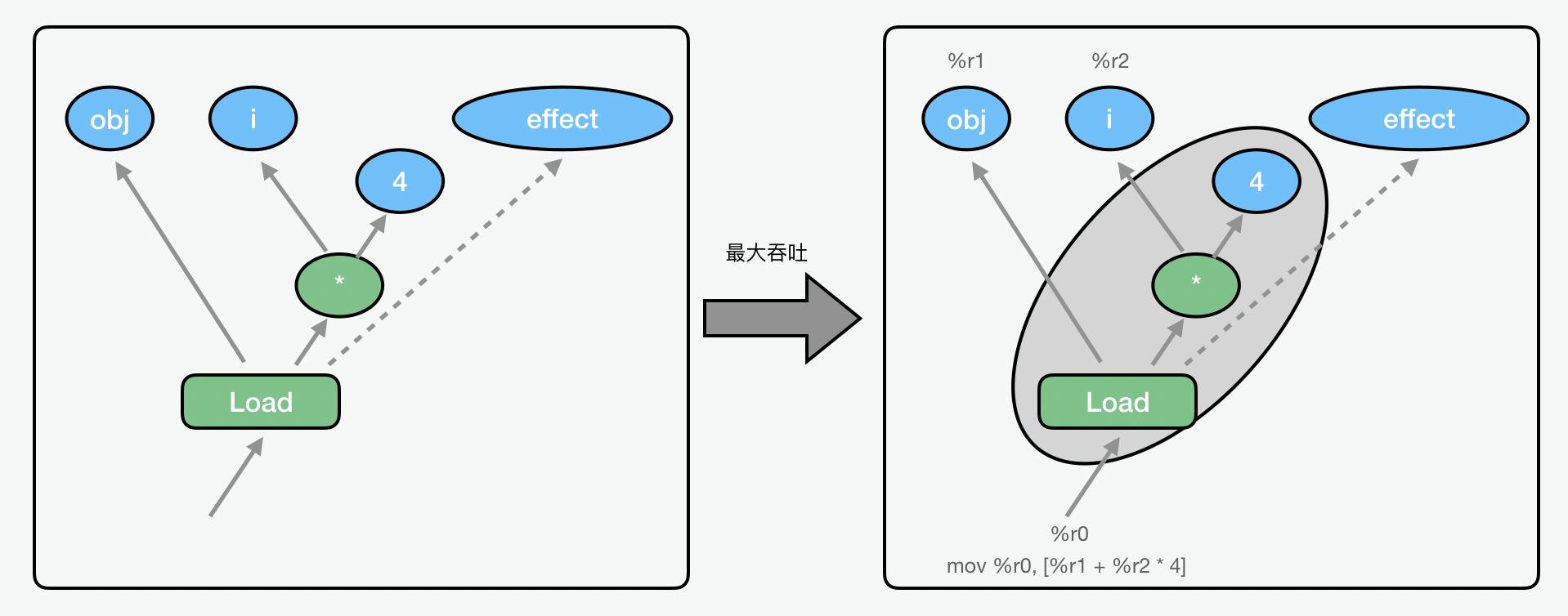 下面我们再来看看指令选择。从理论上讲,指令选择可以用最大吞噬。