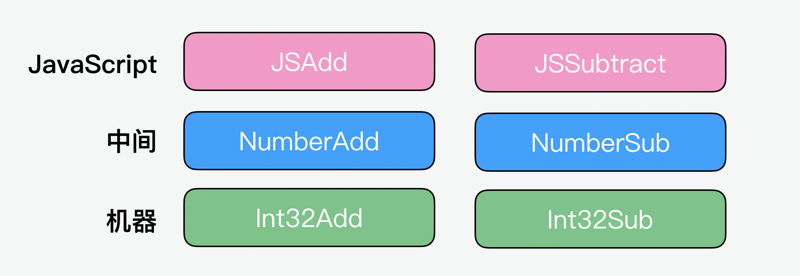 前面我们看到了,TurboFan的Tubolizer会用不同颜色来表示不同类型的节点。包括代表值的浅蓝色节点、代表流程的黄色节点,以及代表运算的深蓝色语言节点,除了深蓝色以外,还有两种语言的节点,一种是上层的红色的JavaScript语言的节点,还有就是更接近底层的机器语言的绿色节点。基本上层级越高,对人来说可读性就越高;层级越低,则越接近机器语言。