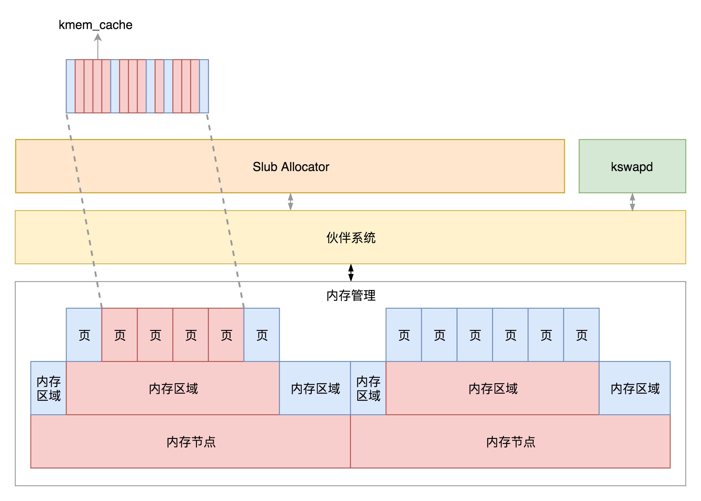 struct kmem_cache { struct kmem_cache_cpu __percpu *cpu_slab; /* Used for retriving partial slabs etc */ unsigned long flags; unsigned long min_partial; int size; /* The size of an object including meta data */ int object_size; /* The size of an object without meta data */ int offset; /* Free pointer offset. */ #ifdef CONFIG_SLUB_CPU_PARTIAL int cpu_partial; /* Number of per cpu partial objects to keep around */ #endif struct kmem_cache_order_objects oo; /* Allocation and freeing of slabs */ struct kmem_cache_order_objects max; struct kmem_cache_order_objects min; gfp_t allocflags; /* gfp flags to use on each alloc */ int refcount; /* Refcount for slab cache destroy */ void (*ctor)(void *); ...... const char *name; /* Name (only for display!) */ struct list_head list; /* List of slab caches */ ...... struct kmem_cache_node *node[MAX_NUMNODES]; };