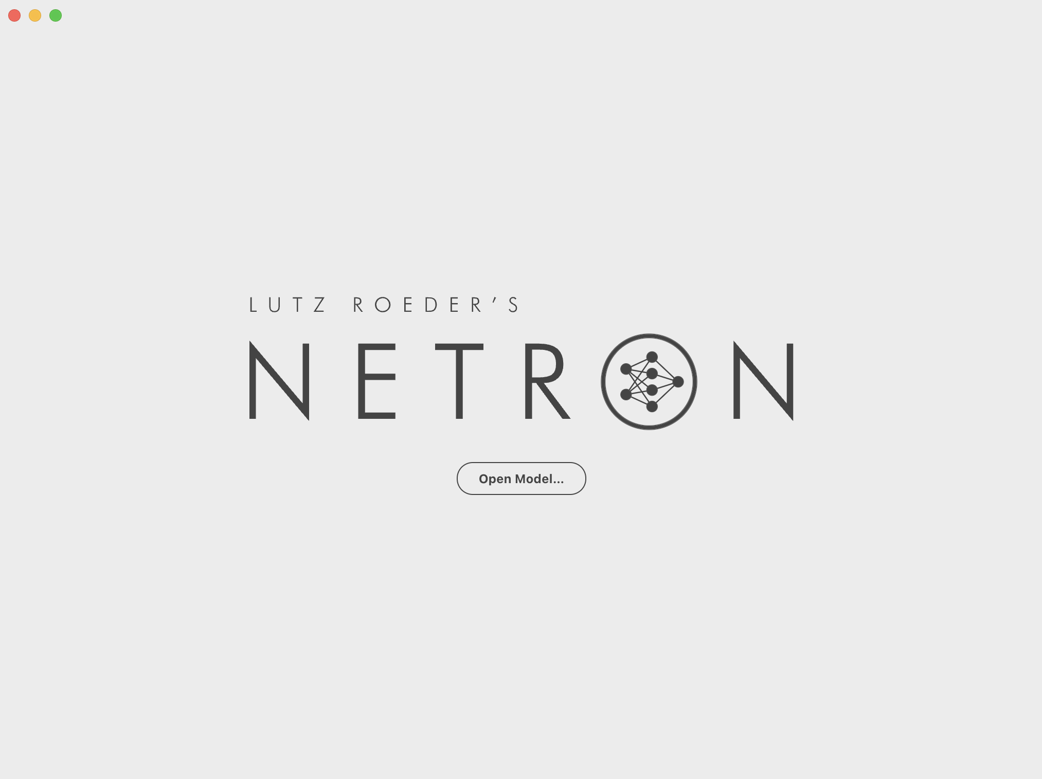 通过一些工具,比如Netron、TensorBoard、torchviz等,我们可以窥探一下模型内部的结构。我们先通过Netron看一下之前训练好的模型的内部结构。Netron的使用方法比较简单,下载安装,然后运行软件,出现了这样一个页面: