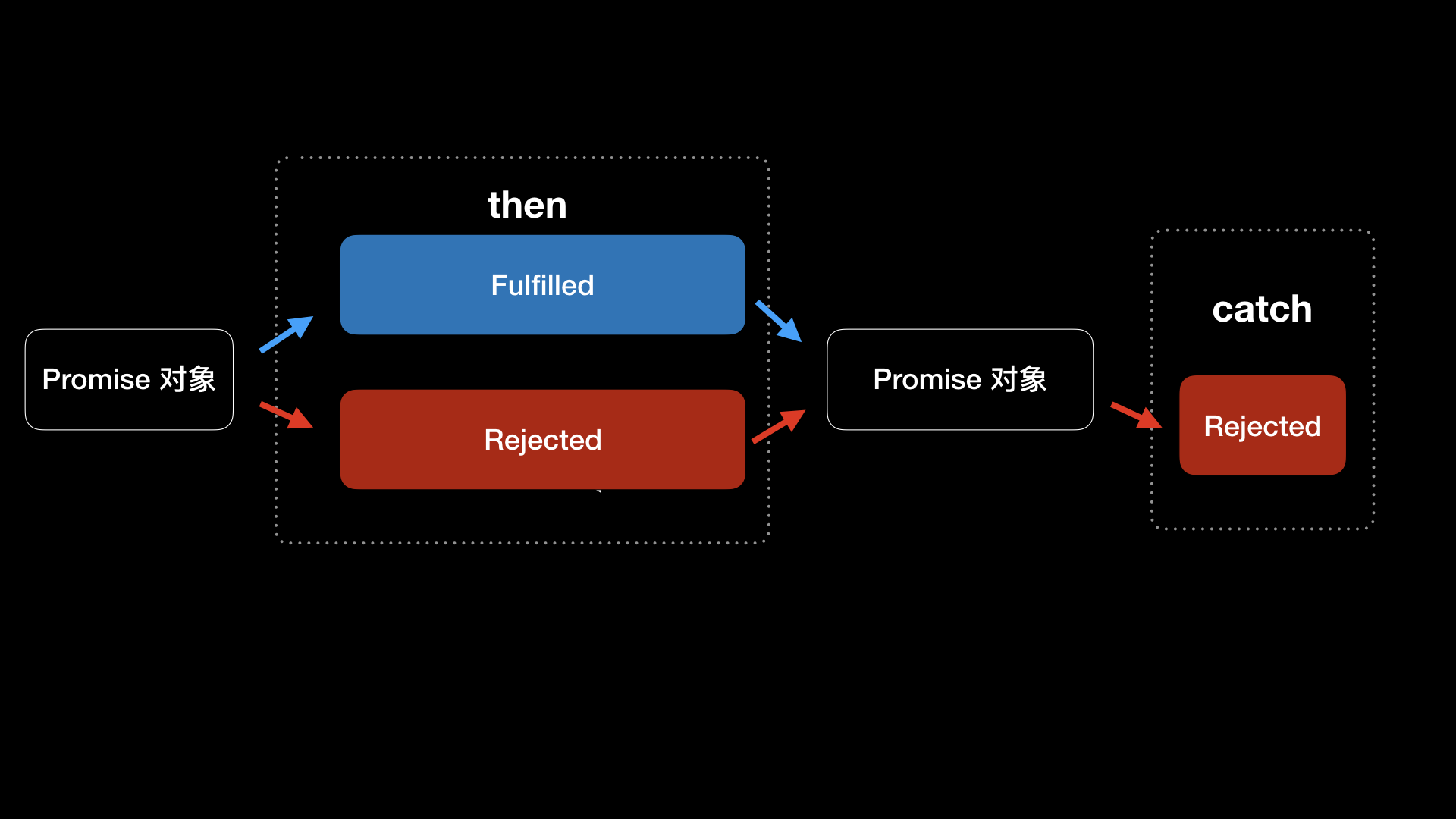 then 和 catch 方法与 Promise 对象状态更改关系,如下图所示: