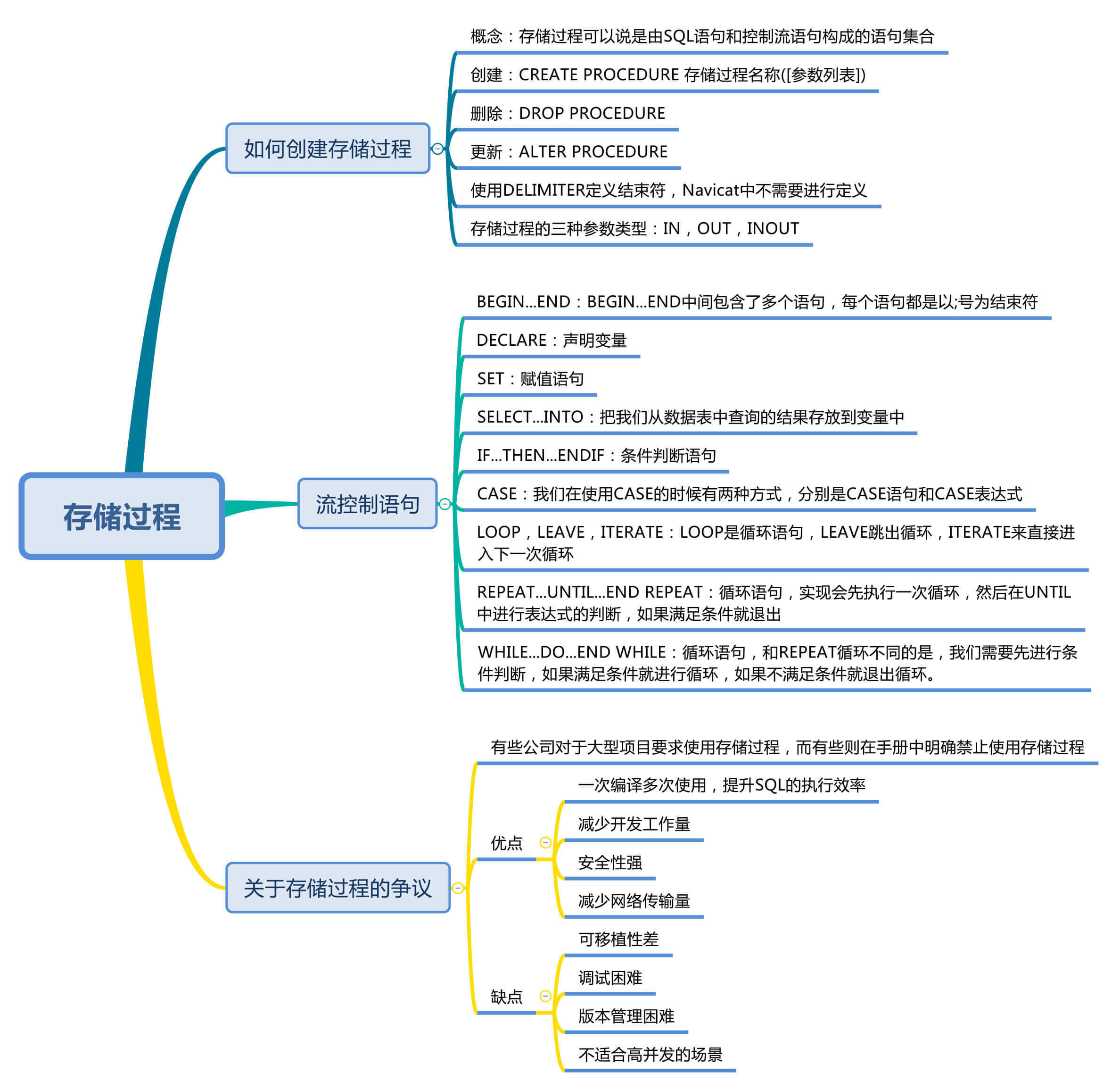 今天有关存储过程的内容,你将重点掌握以下几个部分: