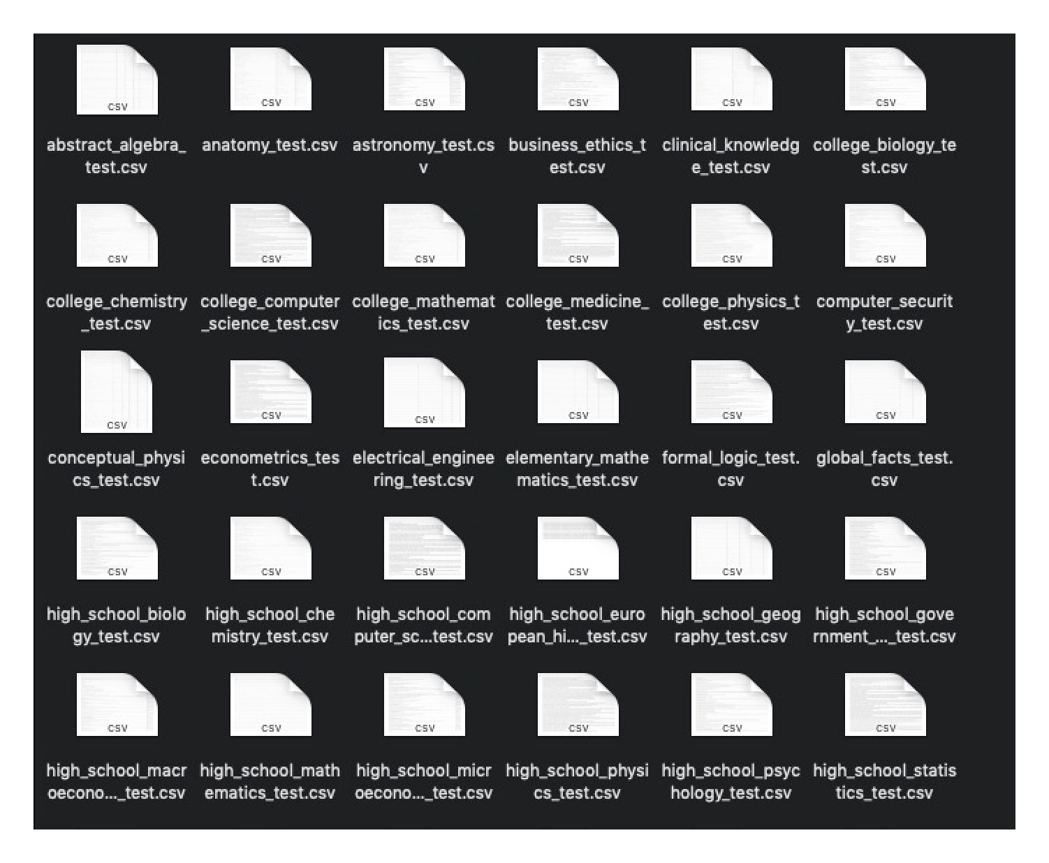 我们在实战中采用MMLU数据集,这是一个通用能力测试数据集,其实不同的测评方案就是数据集不一样,每一个数据集有自己的测评方法,不需要单独编写程序。