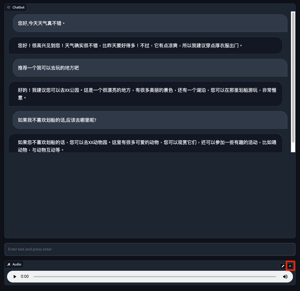 完整的语音对话的Demo代码我一并放在了下面,你可以像[第 6 讲]里我们介绍过的那样,直接部署到Gradio里面体验一下分享出去。