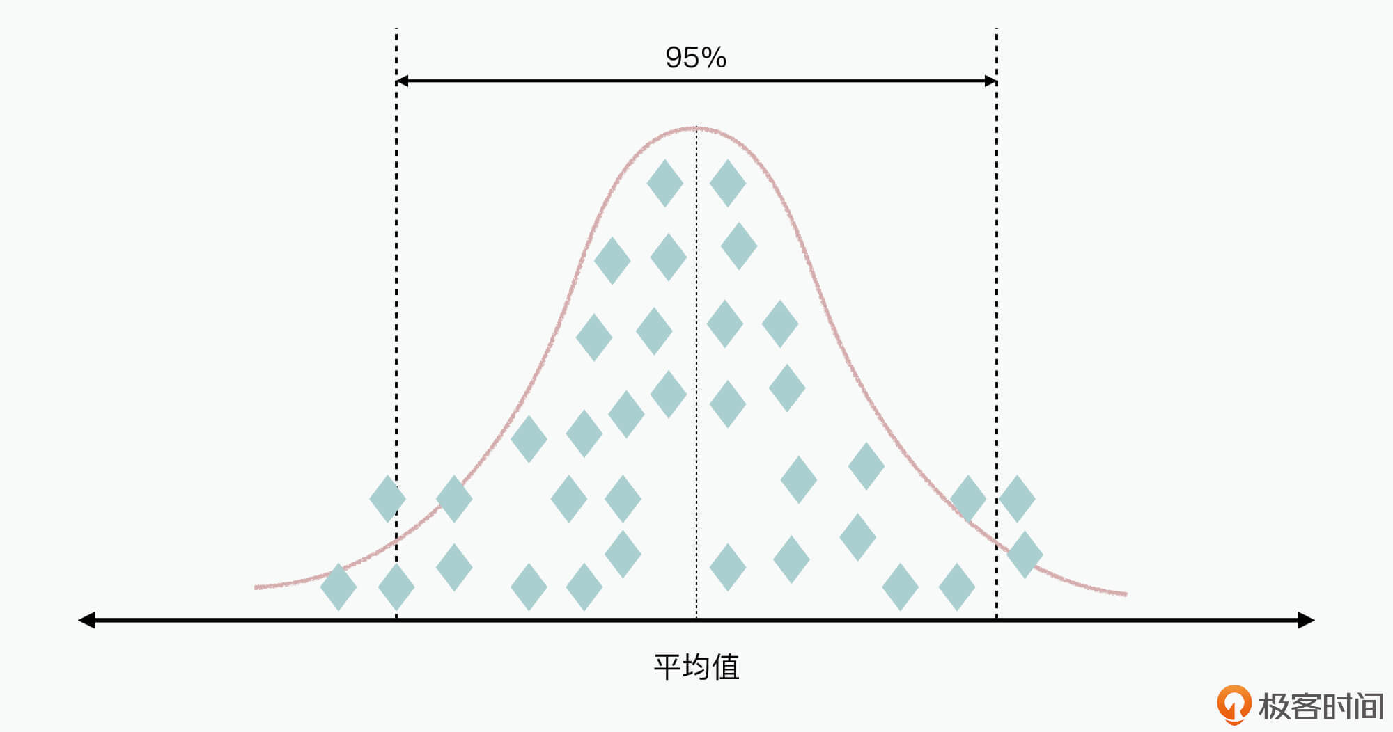 所以在这个基础上,我们可以基于统计学方法,先测量计算出性能测试结果的波动范围区间,也就是置信区间,然后根据测试结果是否落在置信区间,来判断性能基线是否发生变化。