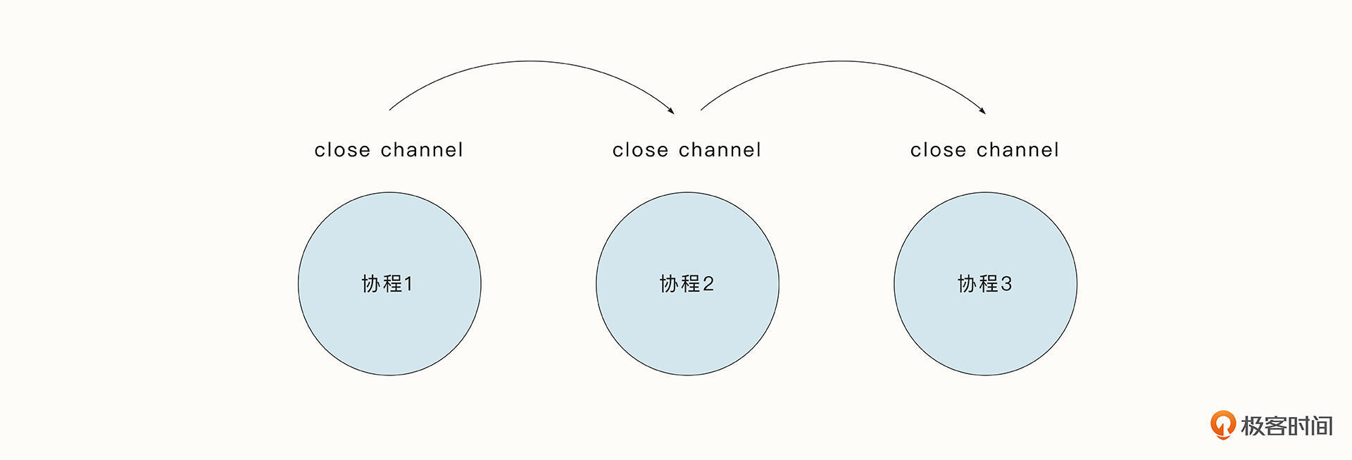 在没有Context之前我们一般会怎么做呢?我们需要借助通道的 close 机制,这个机制会唤醒所有监听该通道的协程,并触发相应的退出逻辑。写法大致如下: