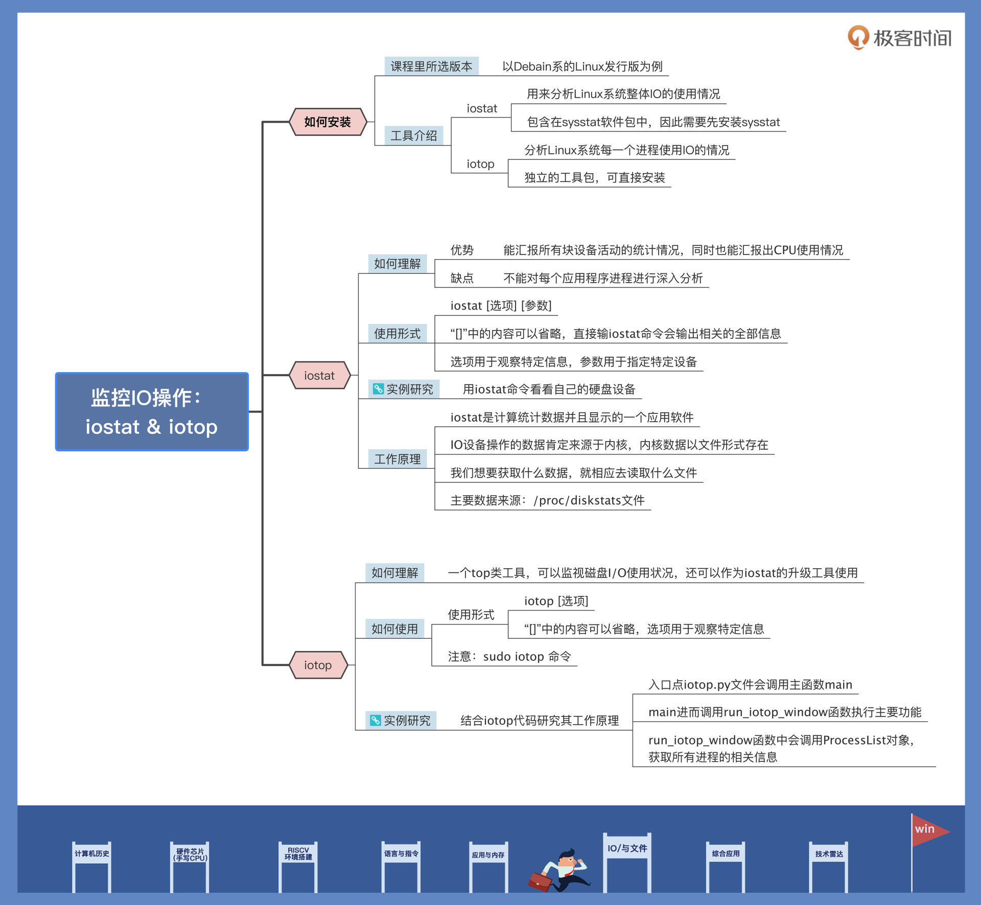 这节课我想带你认识两大监控IO操作的神器——iostat与iotop,让你掌握安装、使用它们的方法以及它们的工作原理。在Linux系统上,iostat和iotop这两个IO数据工具非常常用。它们都是性能分析领域中不可缺少的工具性软件,也经常被Linux网络服务器运维人员,用于分析某些服务器的IO类性能与故障。