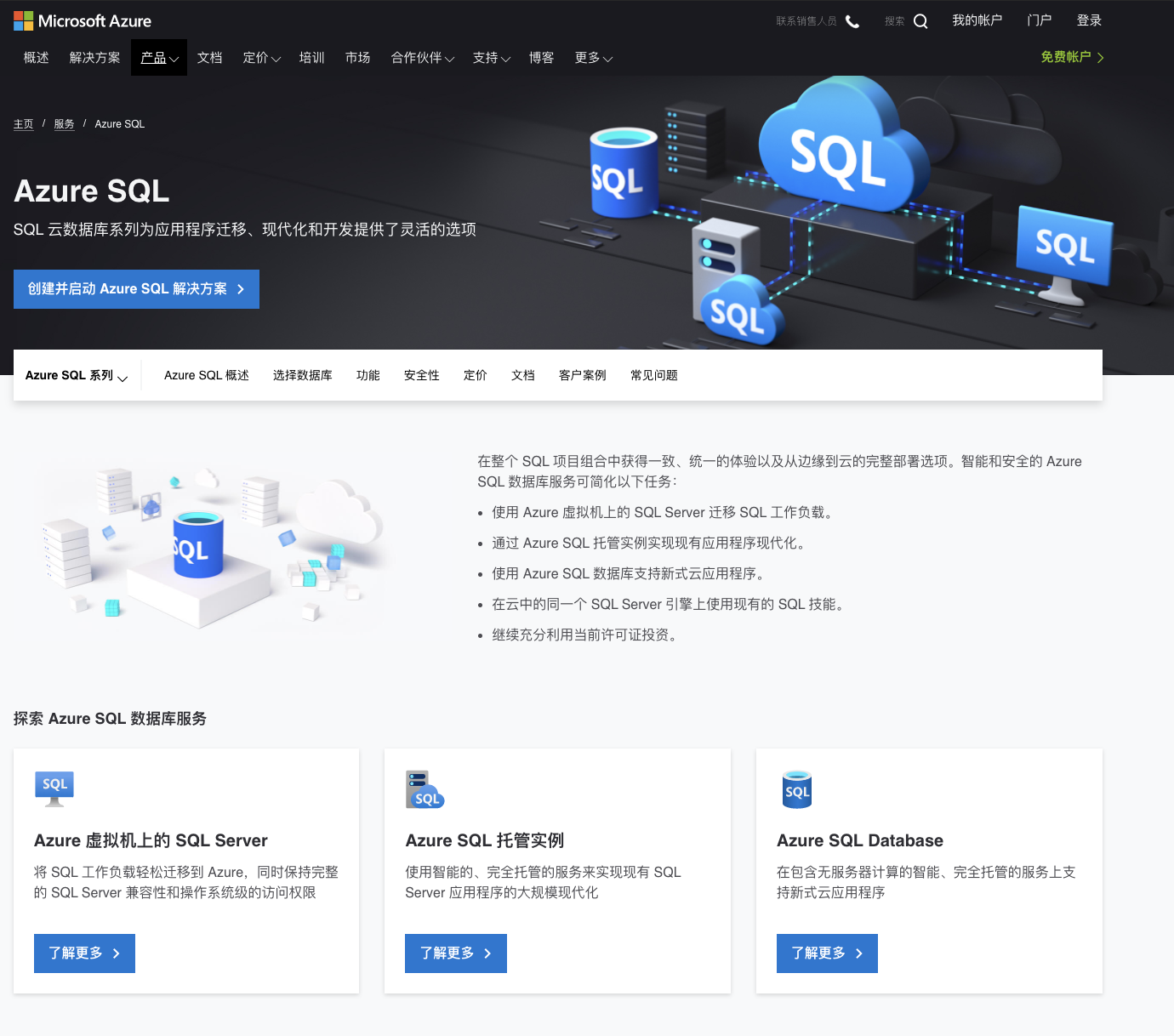 那我们再看看Azure的数据库页面:
