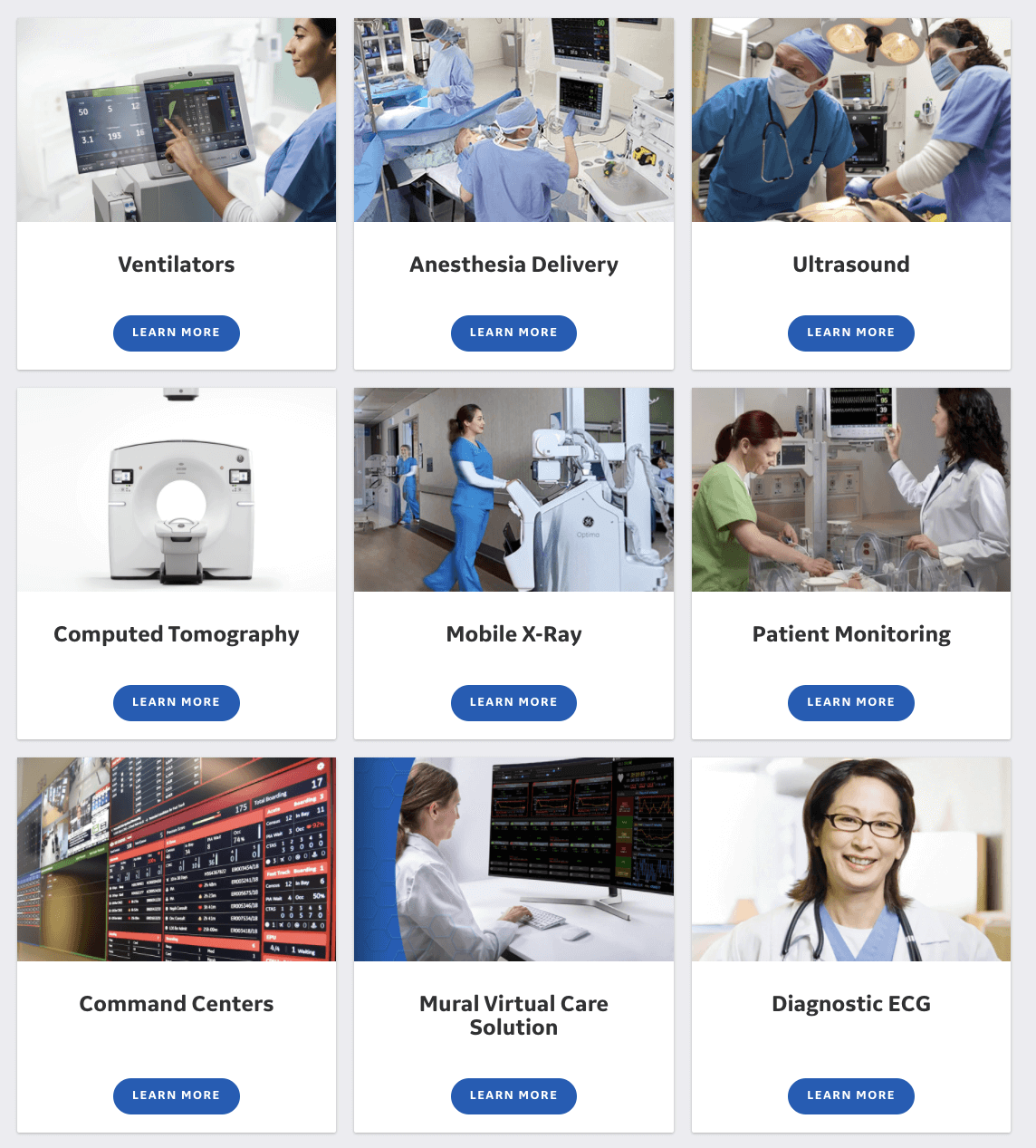 这是GE医疗的一个页面,我们可以看到在专业的场景中,光影自然,色调明快,并且光线柔和,人物照片情绪饱满,工作场景认真专注。这组照片我认为能代表我们To B类企业的照片使用的基本要求。
