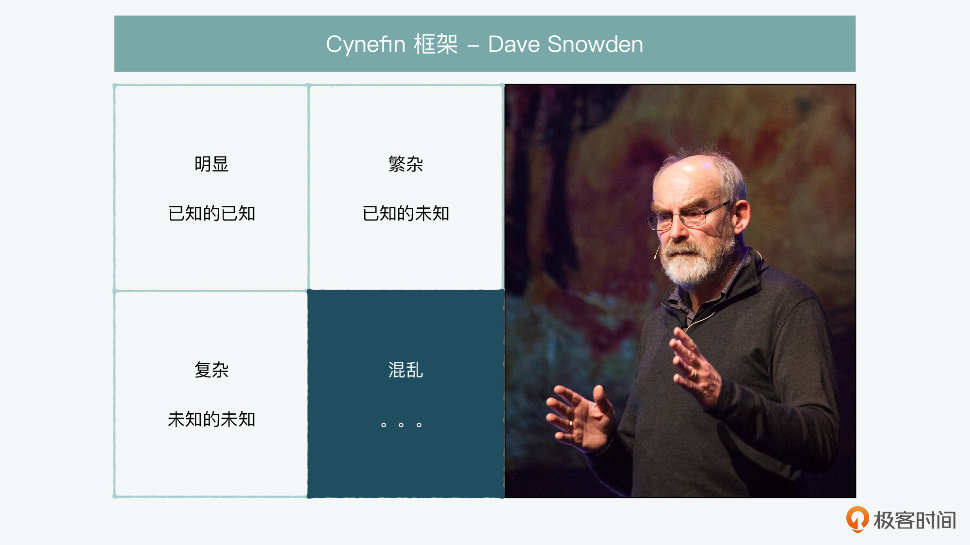 威尔士学者戴夫·斯诺登(Dave Snowden),在1999年供职于IBM期间,提出过一个Cynefin框架,就是来解决这种“混乱”的。他认为,在面对混乱时,应该按这三步走:行动、感知、响应。