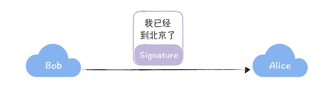 你应该还记得密码学的学术CP(Bob和Alice)吧(不记得的话也没关系,你把他们当作2个人就可以了),今天Bob要给Alice发送一个消息,告诉她,“我已经到北京了”,但是Bob希望这个消息能被Alice完整地接收到,内容不能被篡改或者伪造,我们一起帮Bob和Alice想想办法,看看如何实现这个消息。