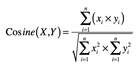 其中$n$表示向量维度,$x_{i}$表示第一个向量的第$i$维元素的值,$y_{i}$表示第二个向量的第$i$维元素的值。