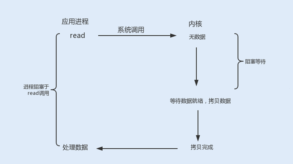 最开始的阻塞式I/O,它在每一个连接创建时,都需要一个用户线程来处理,并且在I/O操作没有就绪或结束时,线程会被挂起,进入阻塞等待状态,阻塞式I/O就成为了导致性能瓶颈的根本原因。