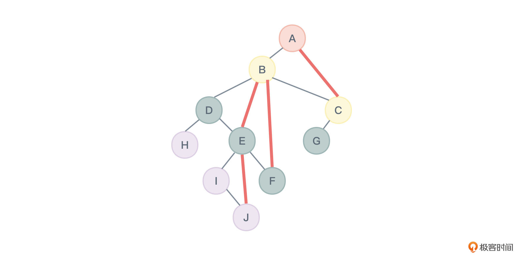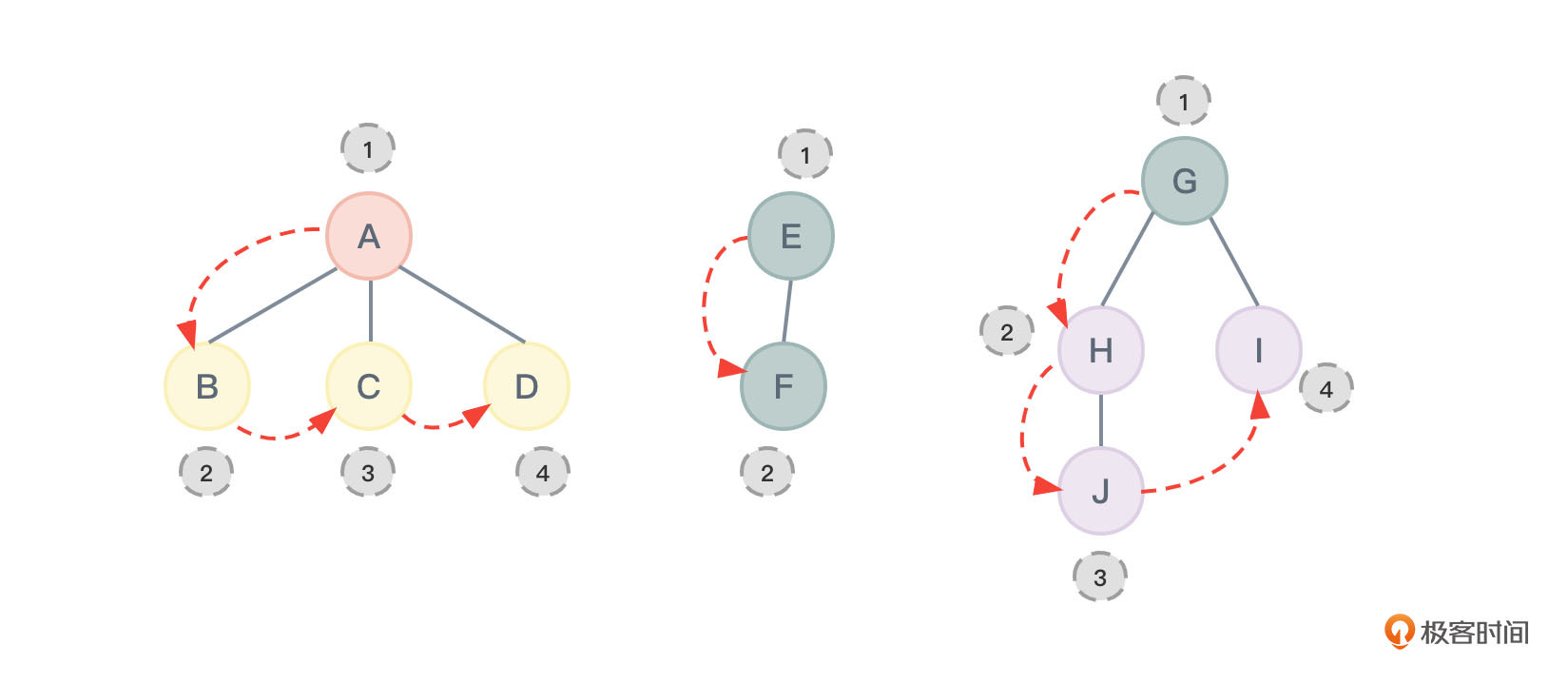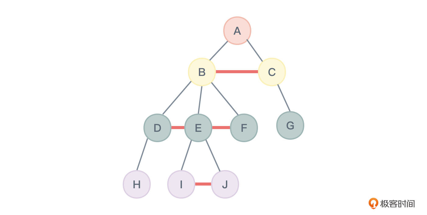 对图2进行层序遍历所得到的结果应该为:ABCDEFGHIJ,节点的访问顺序如图31所示: