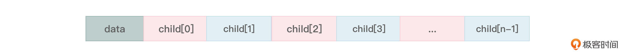 上面这种写法解决了浪费空间的问题,因为节点结构不一致,导致实现代码比较复杂,节点度数的差异性也会带来运算时间上的损耗。那么是否有更好的办法既能减少空间浪费又能使节点结构相同呢?可以。