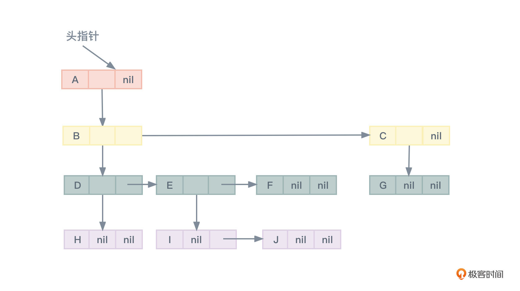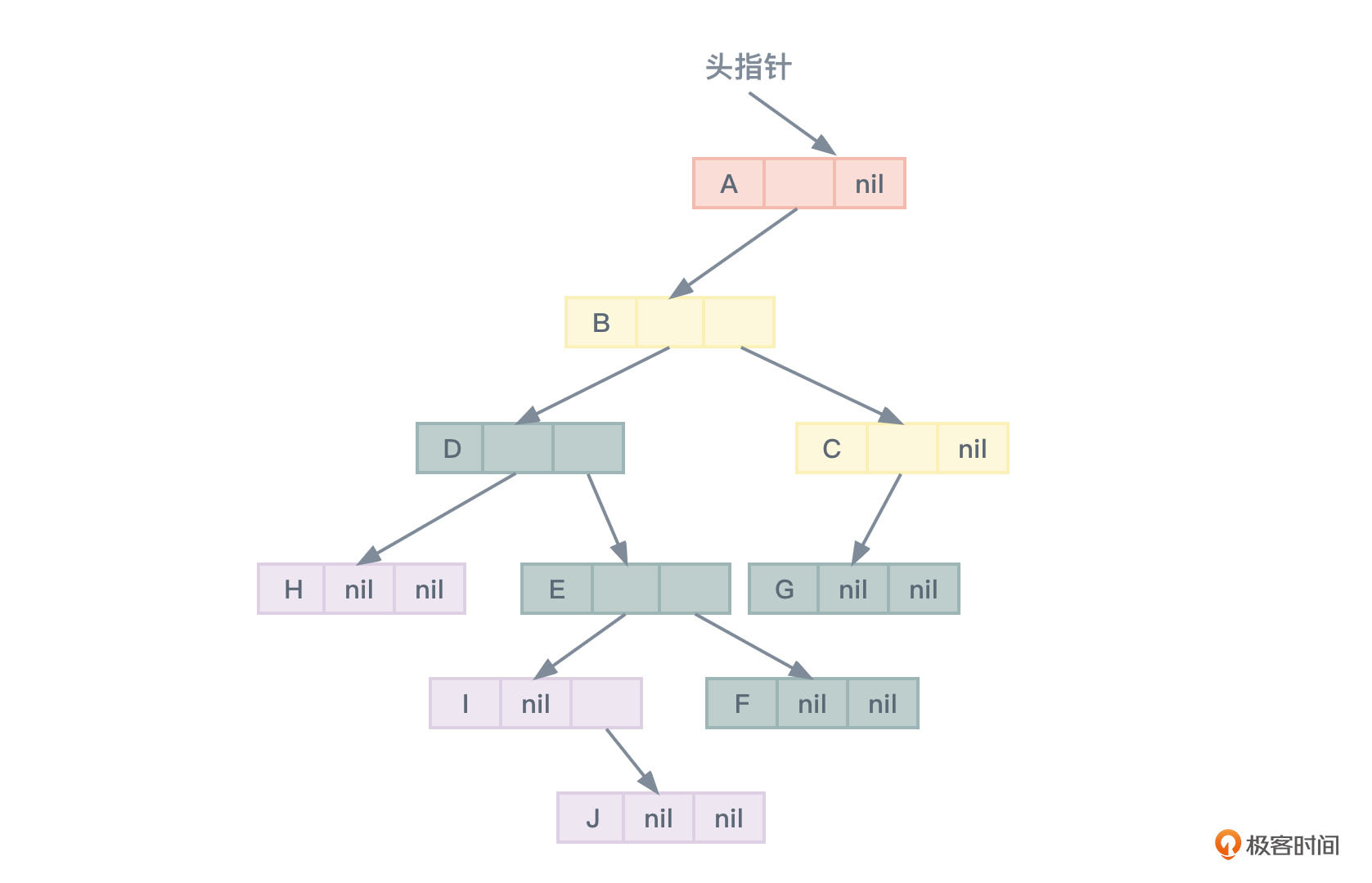对于图2所示的树,使用这种方案的存储结构如图12所示: