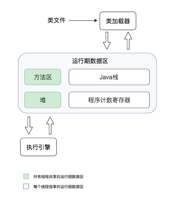 要想知道这个问题的答案,我们首先需要了解JVM的构造。JVM主要由类加载器、运行时数据区、执行引擎三个部分组成。