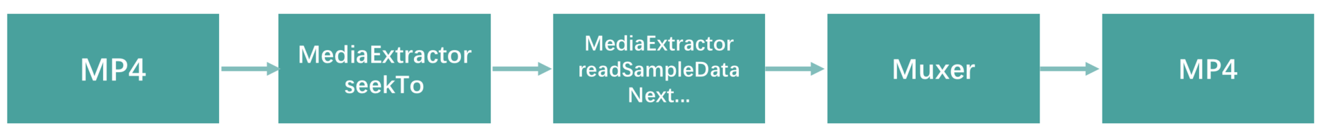 对于视频裁剪、拼接来说,Android直接提供了MediaExtractor的接口,结合seek以及对应读取帧数据readSampleData的接口,我们可以直接获取对应时间戳的帧的内容,这样读取出来的是已经编码好的数据,因此无需重新编码,直接可以输入合成器再次合成为MP4。