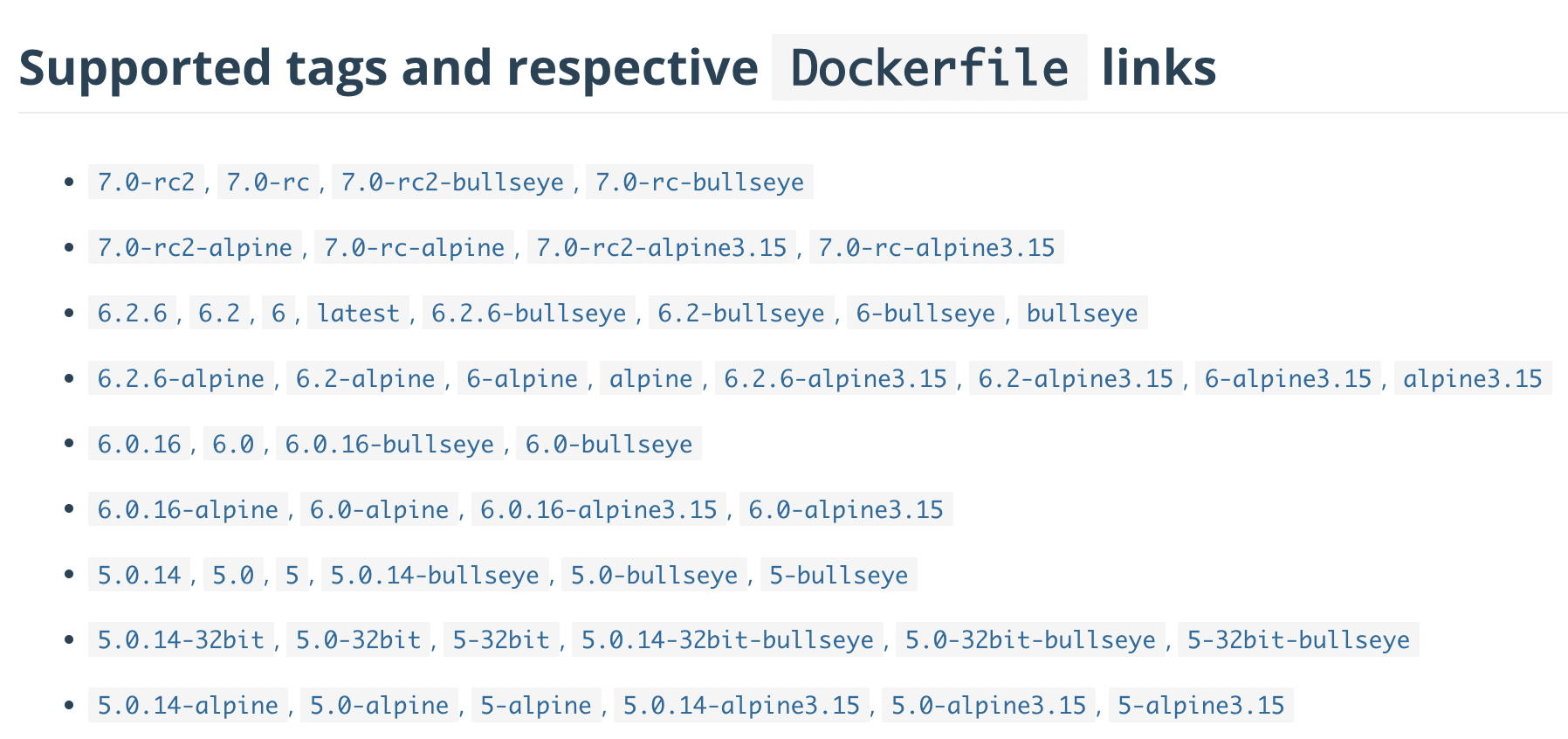- redis:7.0-rc-bullseye,表示版本号是7.0候选版,基础镜像是Debian 11。