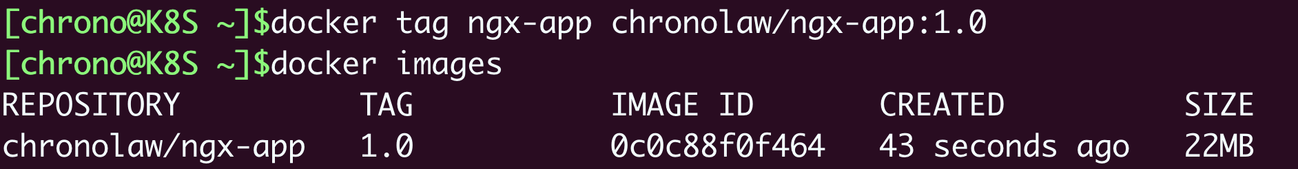 1 | docker tag ngx-app chronolaw/ngx-app:1.0 |