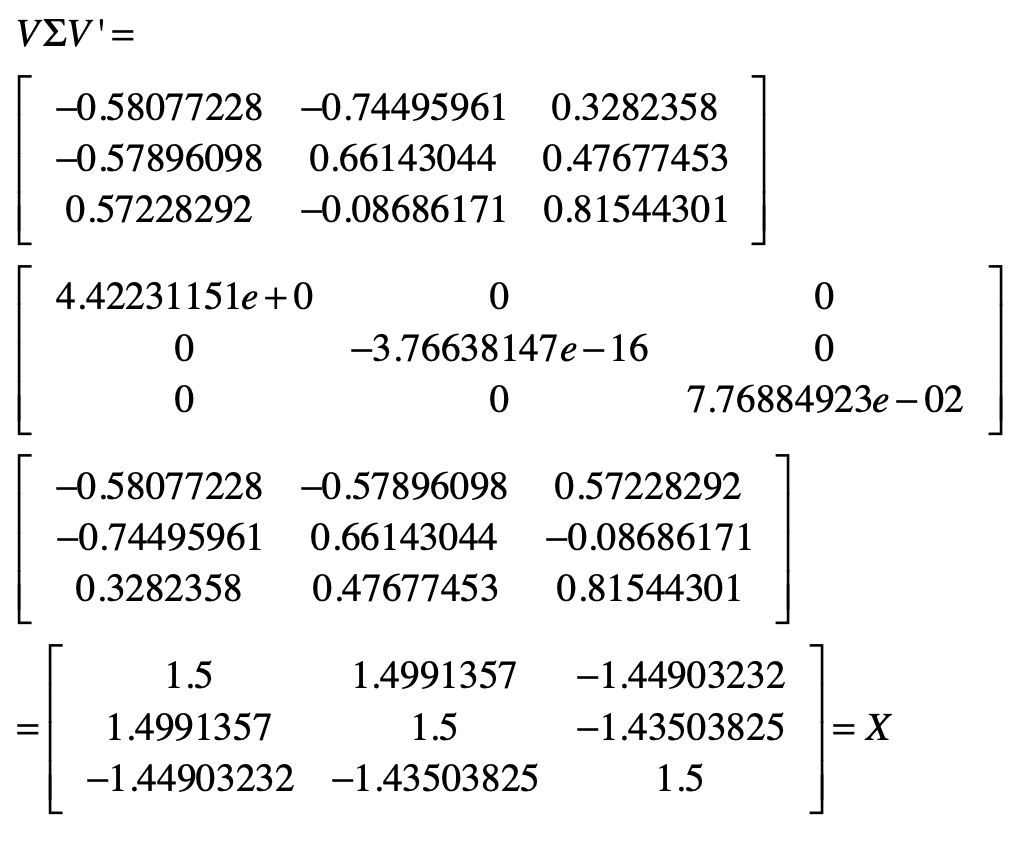 下面我们需要证明$X=VΣV’$成立,我把推算的过程写在下面了。