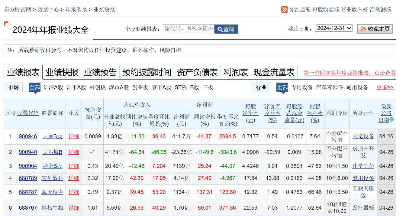 这里我抓取的是 2024 年年报的数据。你也可以点击链接,去东方财富网看到相关的数据。
