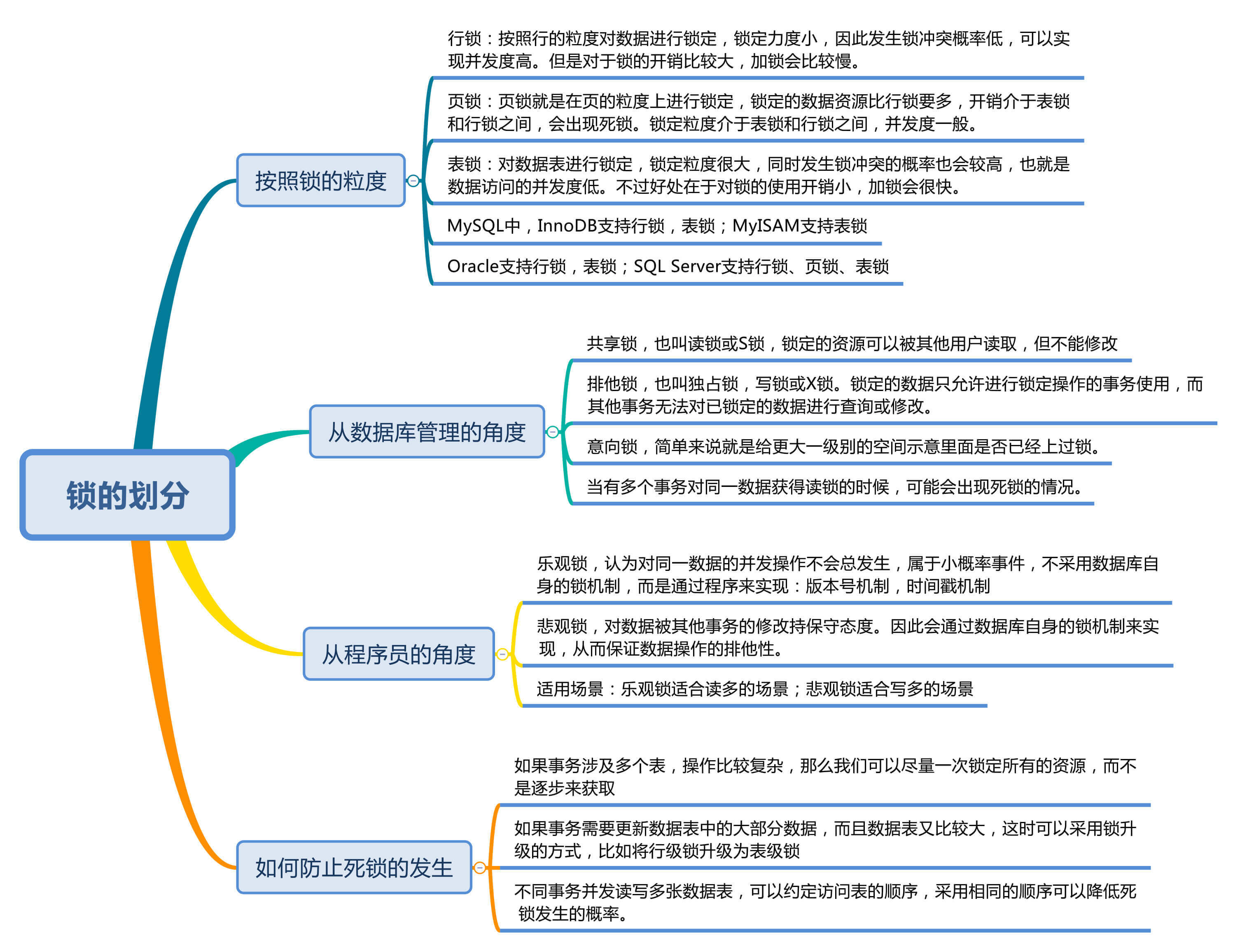 今天我们讲解了数据库中锁的划分,你能看到从不同维度都可以对锁进行划分,需要注意的是,乐观锁和悲观锁并不是锁,而是锁的设计思想。