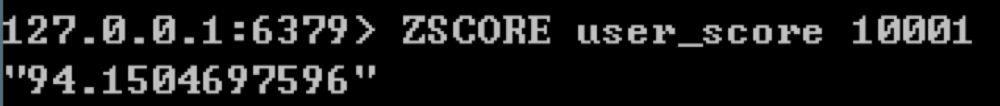 如果我们想要查询玩家10001的分数可以使用:ZSCORE user_score 10001。