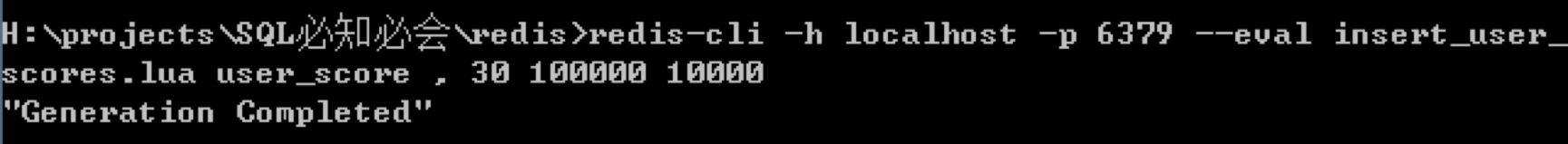 如果我们想要通过Lua脚本创建10万名玩家的数据,文件名为insert_user_scores.lua,代码如下:
