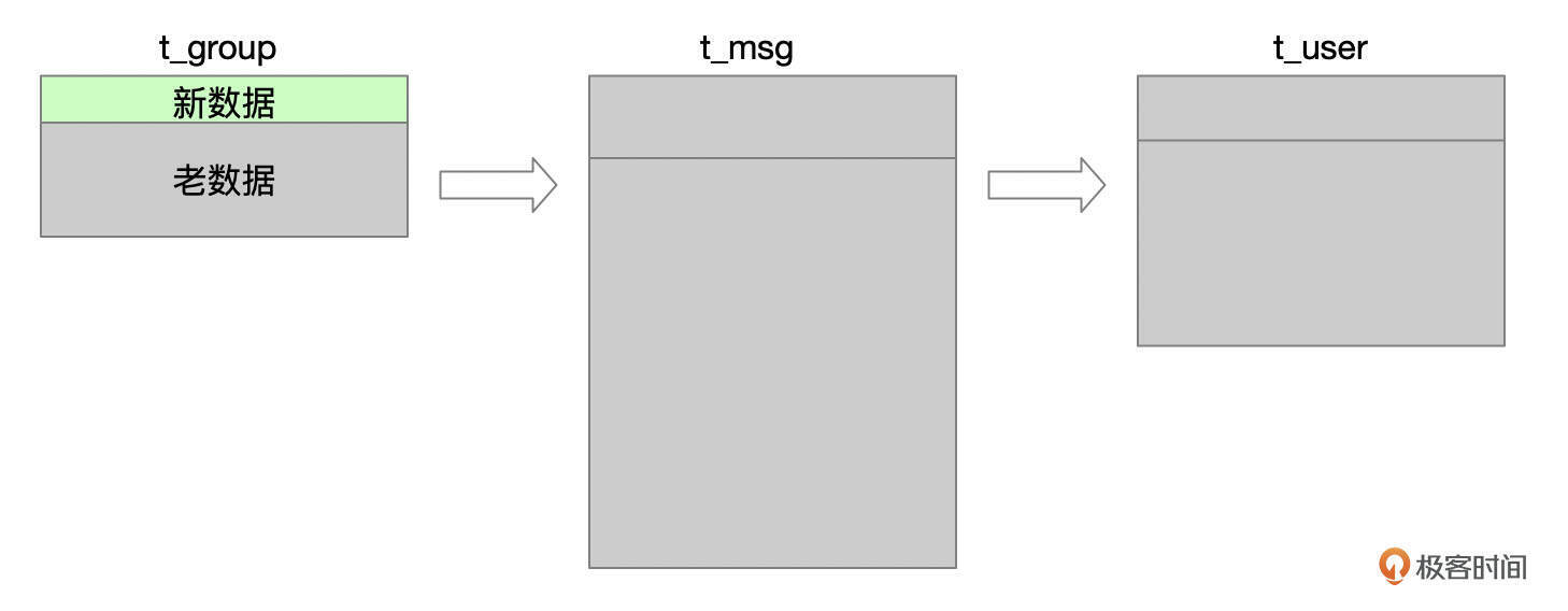 SELECT t_msg.msg_id,t_msg.content , ...... FROM t_msg LEFT JOIN t_user ON t_msg.user_id = t_user.user_id LEFT JOIN t_group ON t_msg.group_id = t_group.group_id WHERE t_group.gmt_modified >= date_sub('2018-04-29 09:31:44', INTERVAL 30 SECOND)
