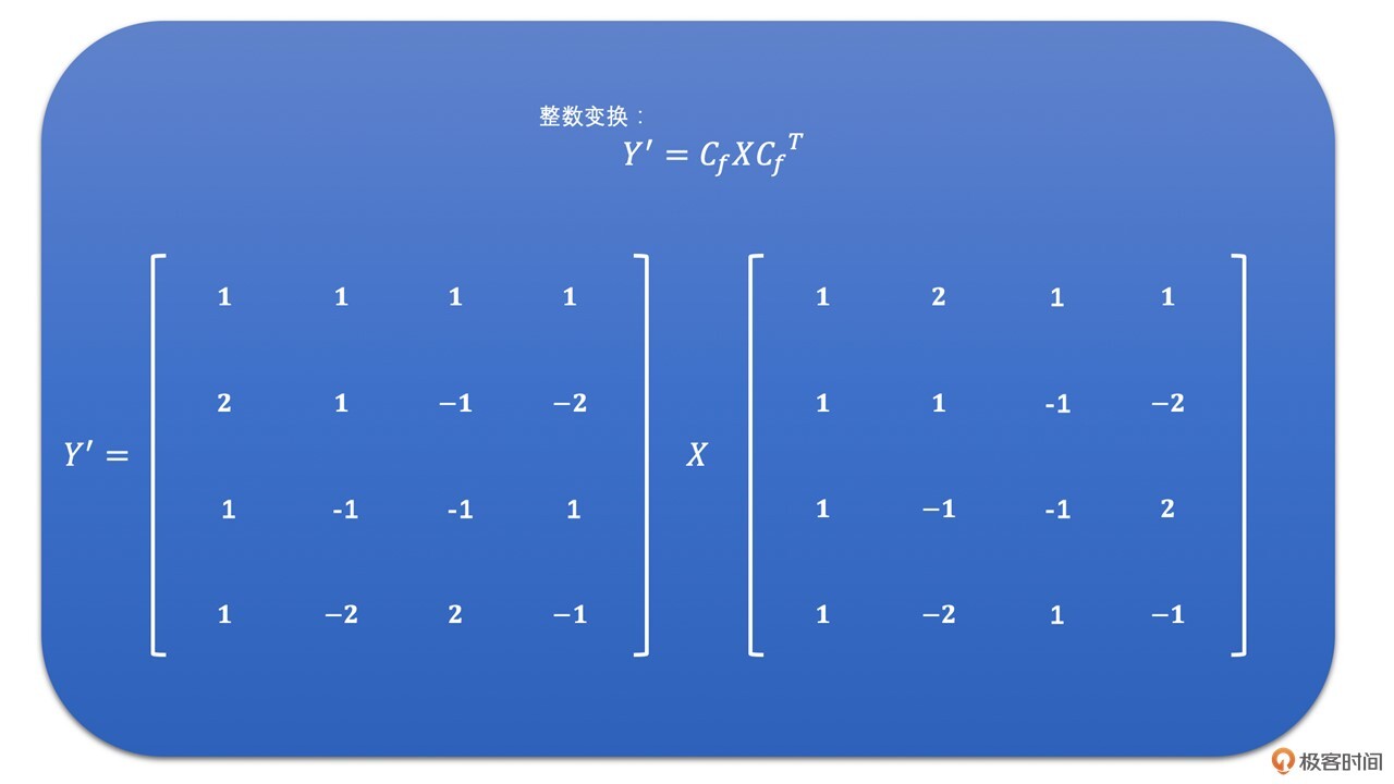 我们同样使用上面DCT变换的例子来做一下整数变换。其结果如下: