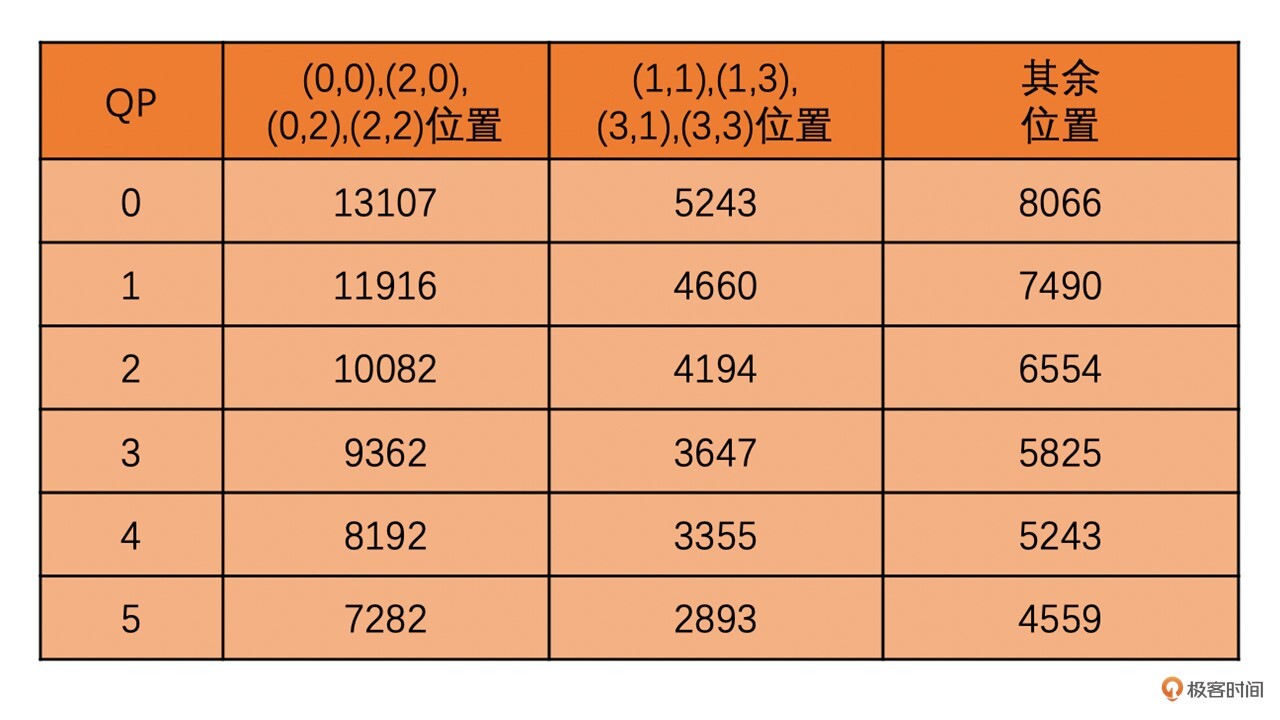 其中,MF我们一般都是通过表格查询得到。表格如下。其中,对于QP大于5的情况,使用QP = QP % 6进行查询。