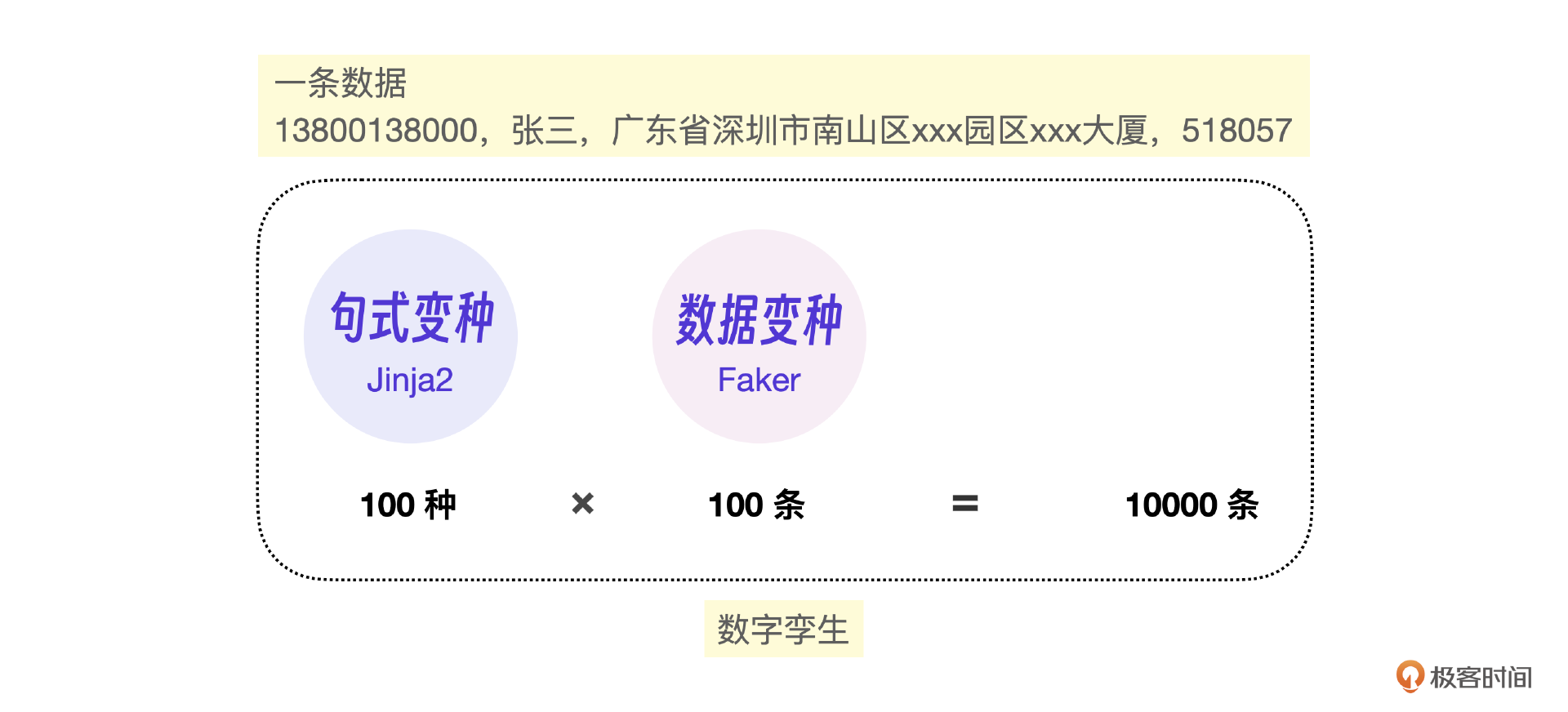这时候就要用数字孪生技术了,数字孪生可以在只有一条数据的情况下,孪生出上万条数据。本节课的地址信息提取就是一个典型的例子。