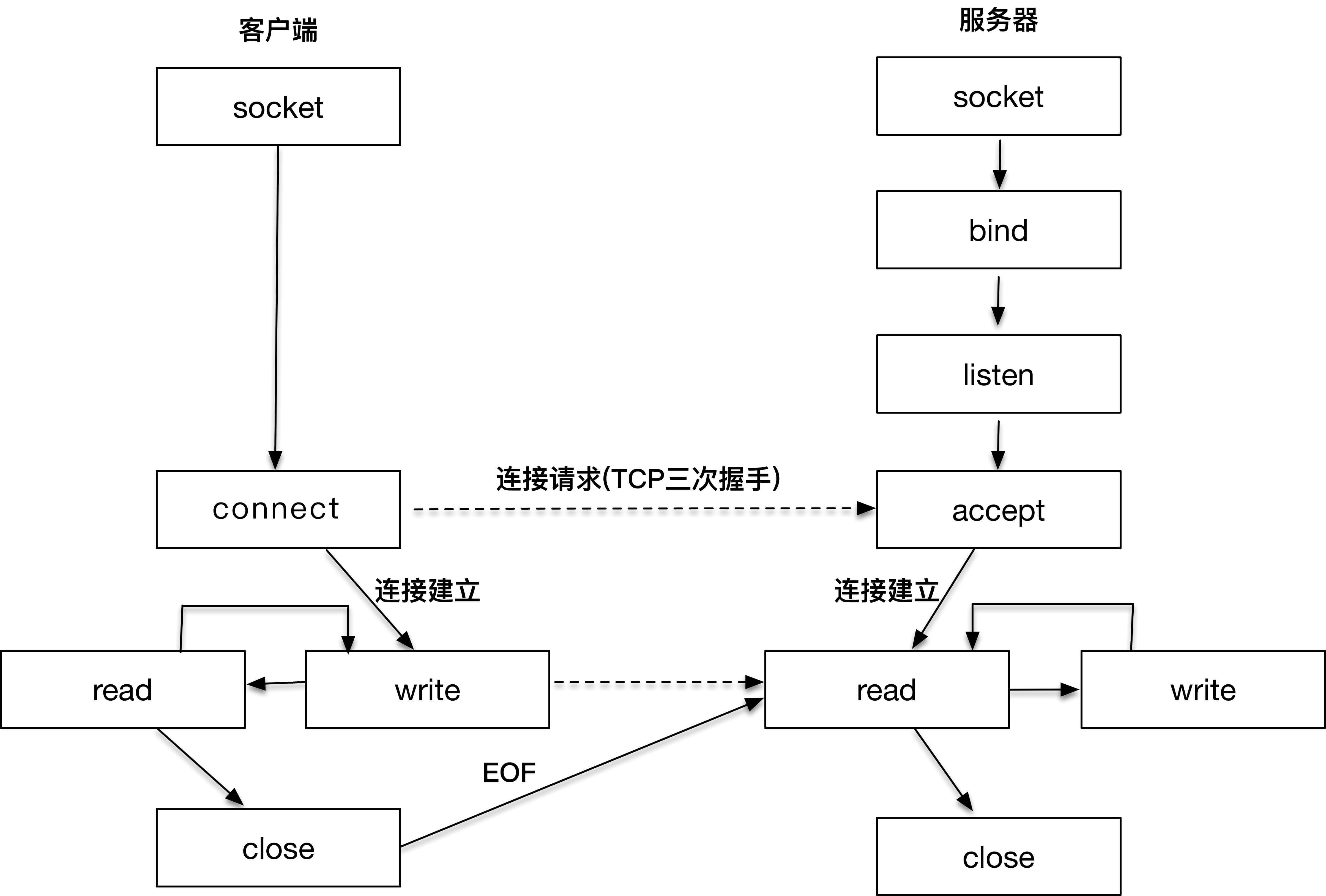 讲这幅图的真正用意在于引入socket的概念,请注意,以上所有的操作,都是通过socket来完成的。无论是客户端的connect,还是服务端的accept,或者read/write操作等,socket是我们用来建立连接,传输数据的唯一途径。