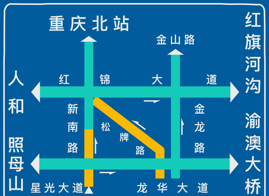 我们经常可以在市内的高架上看到交通拥堵示意图。在下面的这张交通信息图上,你可以看到,每条道路都通过上下左右不同的方位,有机地关联在一起,形成一个整体的交通网络;同时,在交通图上,通过红黄绿三种状态,实时地反映了每条道路的拥堵情况。这样,司机就可以非常直观地了解道路是否畅通,从而提前避开拥堵路段。