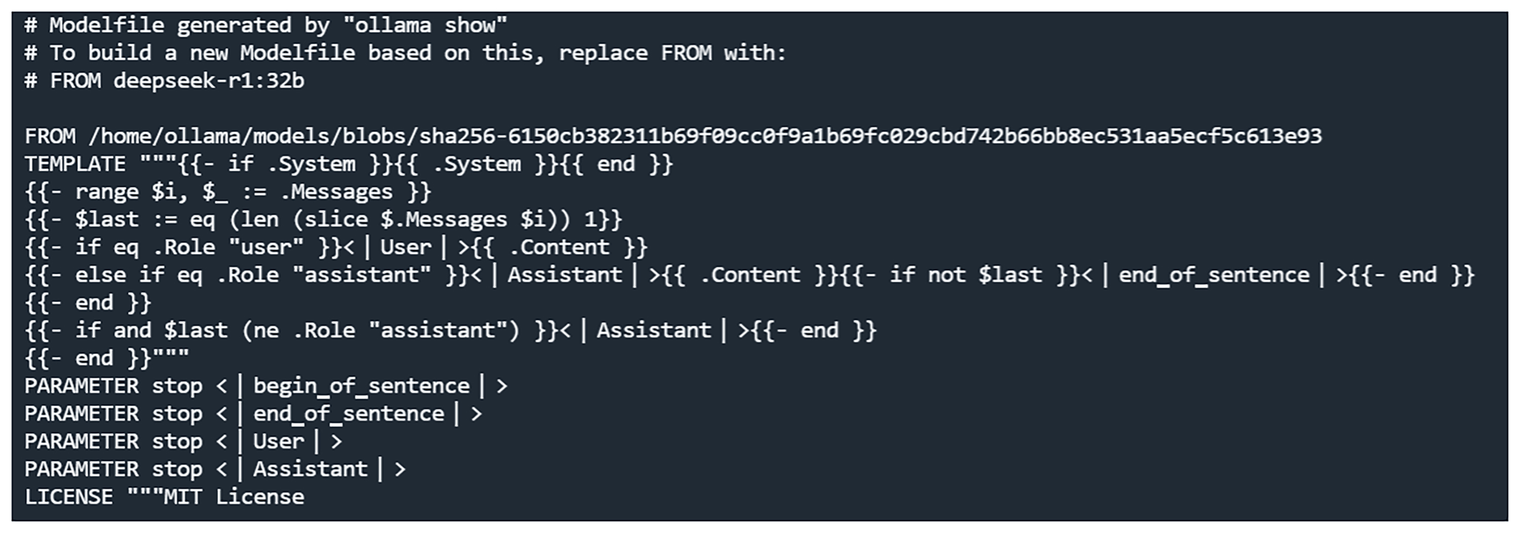 1 | ollama show --modelfile deepseek-r1:32b > Modelfile |