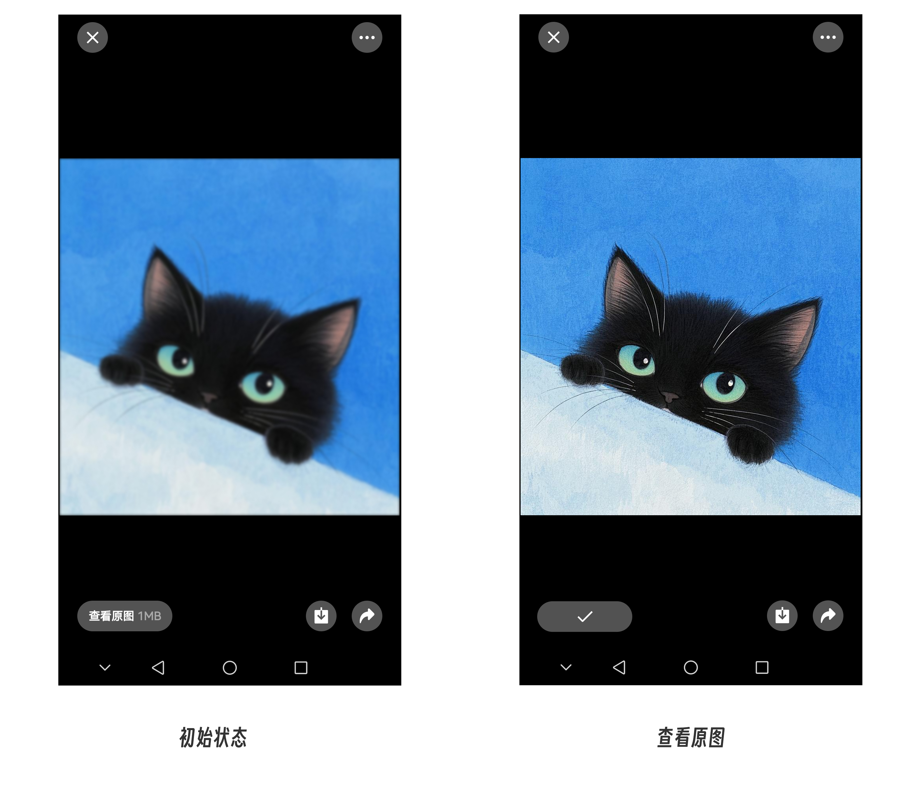 讲到这,可能会有同学还是不理解什么是量化,我举一个简单的例子做一下类比。我们在使用微信时,经常会互相发一些图片。如果我们在收到图片时不点下载原图,图片画质就不清晰(分辨率低),但图片大小可能只有几百 K,占用存储空间小;如果我们点了下载原图,图片更加清晰(分辨率高),但占用存储空间大。原版模型和量化模型之间的关系呢,大概就类似于原图和非原图之间的关系,如果为了节省显存,就需要对模型进行量化。
