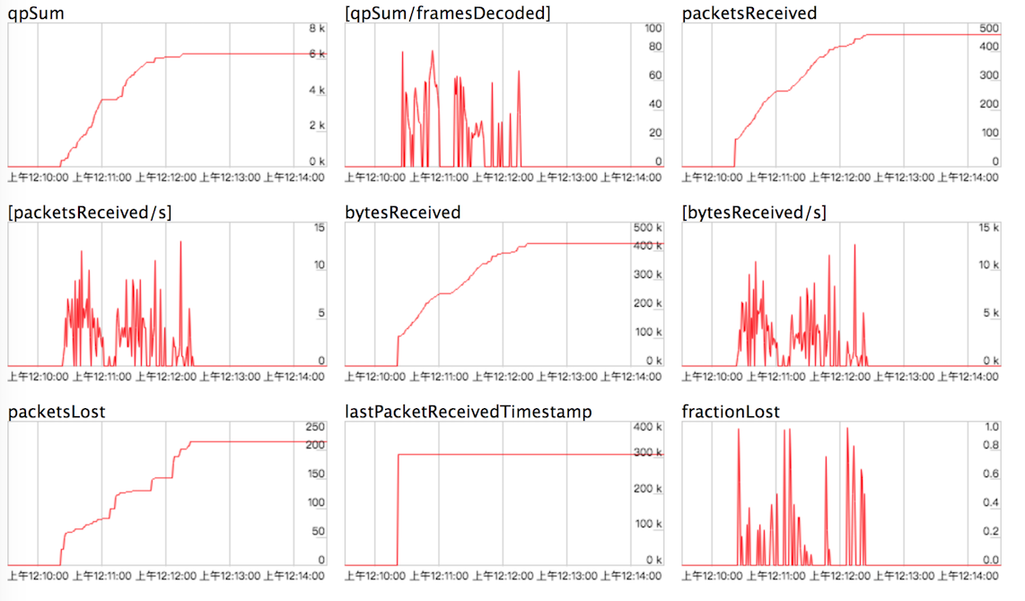 在WebRTC中可以监控很多方面的数据,比如收了多少包、发了多少包、丢了多少包,以及每路流的流量是多少,这几个是我们平常最关心的。除此之外,WebRTC还能监控目前收到几路流、发送了几路流、视频的宽/高、帧率等这些信息。