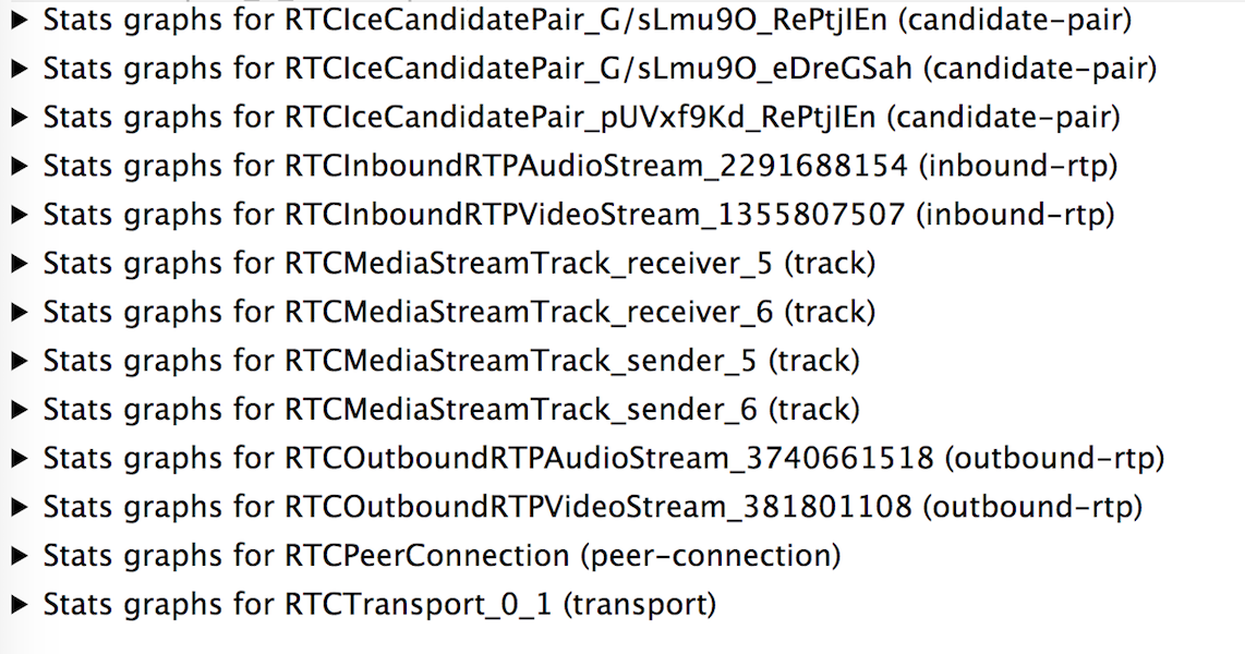 在WebRTC中可以统计到的信息特别多,按类型大体分为以下几种: