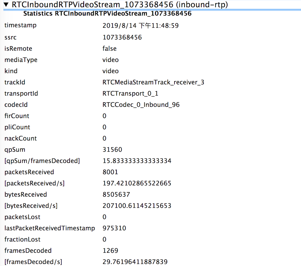 首先我们来看一下 inbound-rtp 类型的 Report: