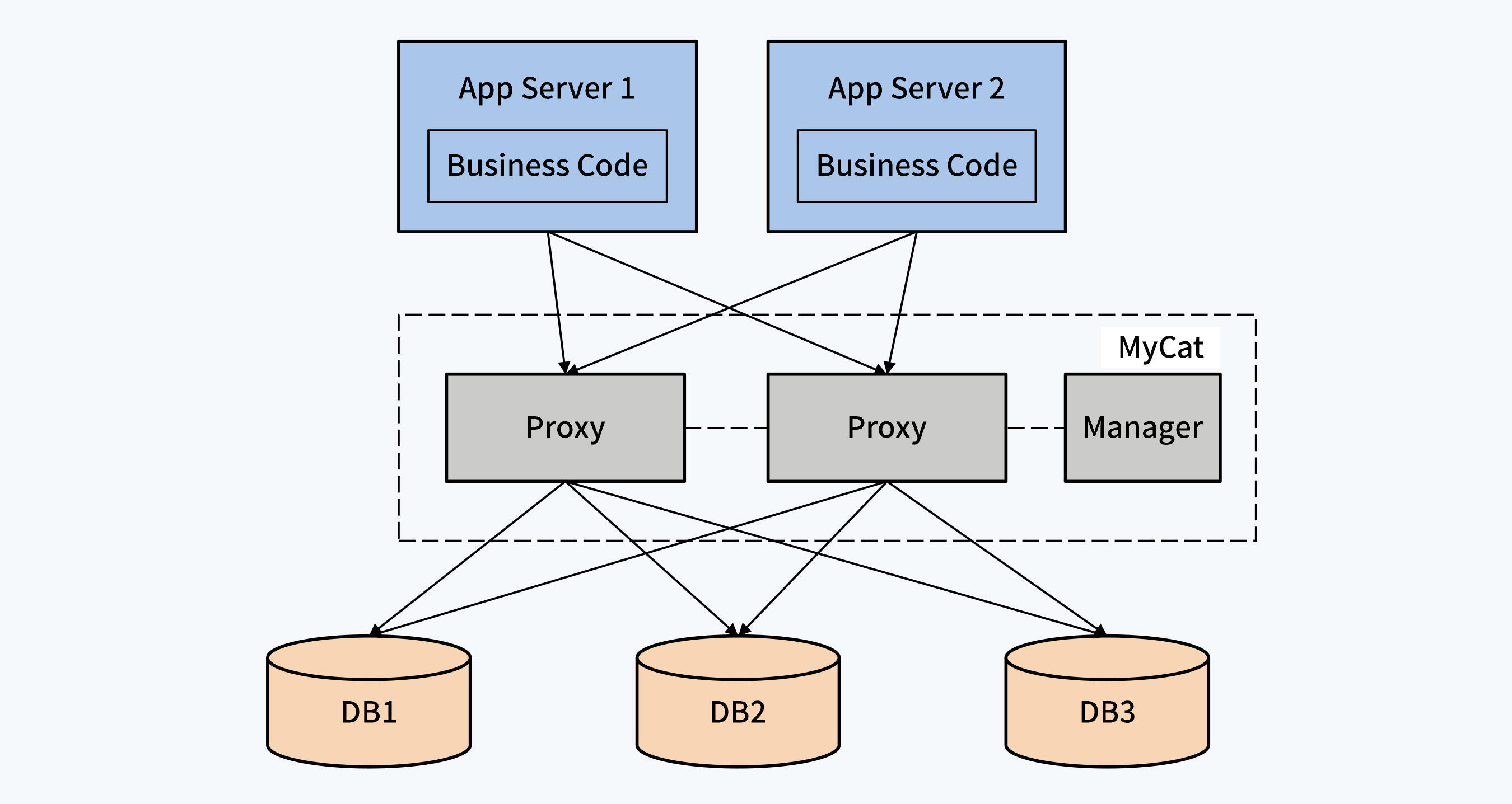 通过独立的逻辑层建立数据分片和路由规则,实现单体数据库的初步管理,使应用能够对接多个单体数据库,实现并发、存储能力的扩展。其作为应用系统的一部分,对业务侵入比较深。