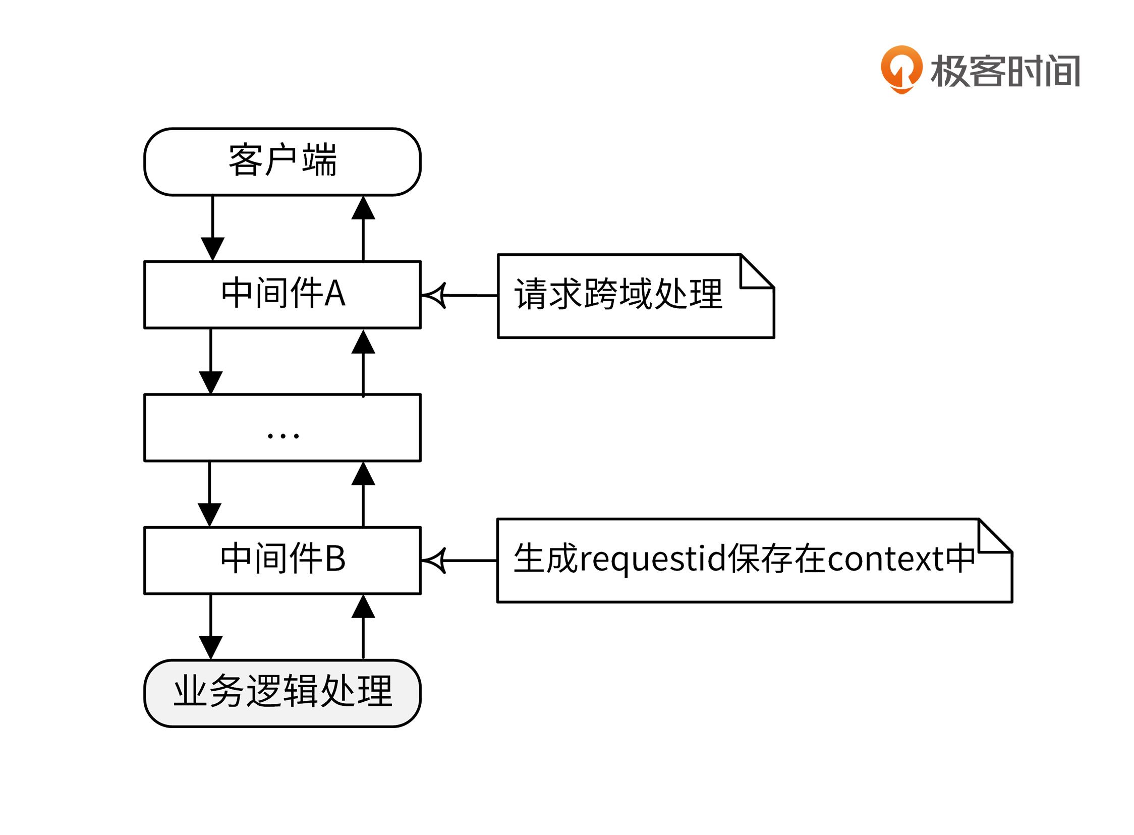 在进行HTTP请求时,经常需要针对每一次请求都设置一些通用的操作,比如添加Header、添加RequestID、统计请求次数等,这就要求我们的Web服务能够支持中间件 特性。