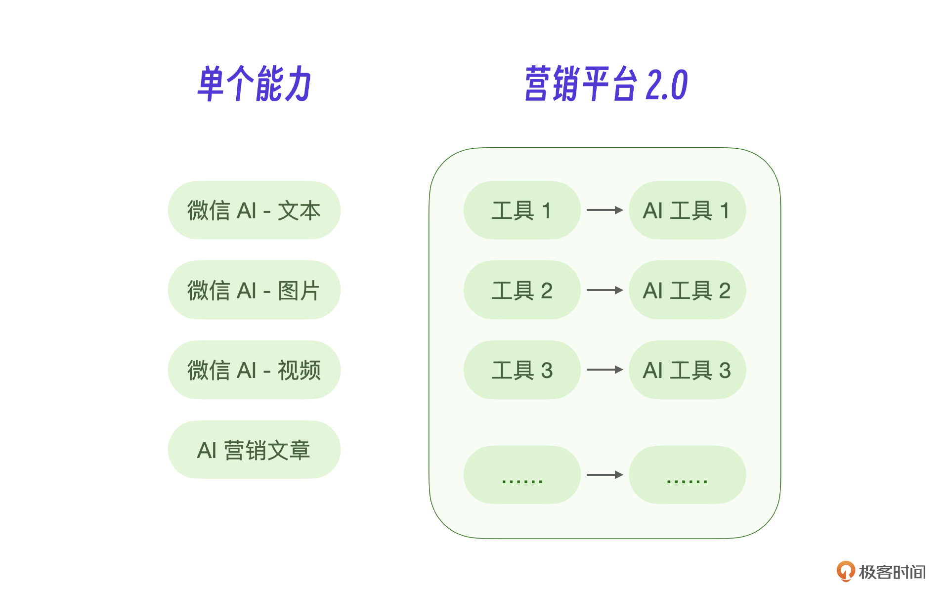 原来我们要做的就是把原有系统用AI重新写一遍,也就是我说的营销平台2.0。