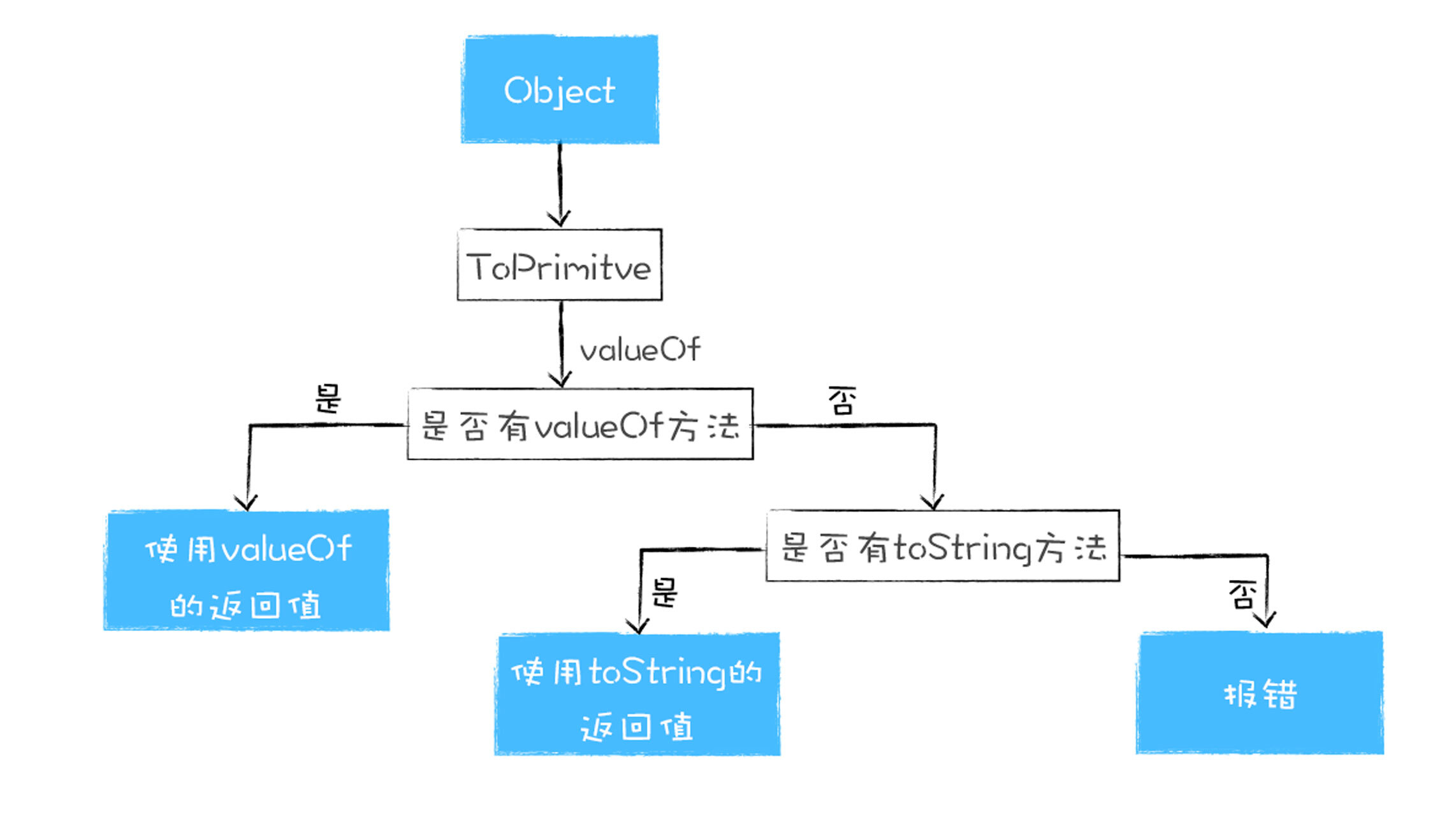 - 先检测该对象中是否存在valueOf方法,如果有并返回了原始类型,那么就使用该值进行强制类型转换;
